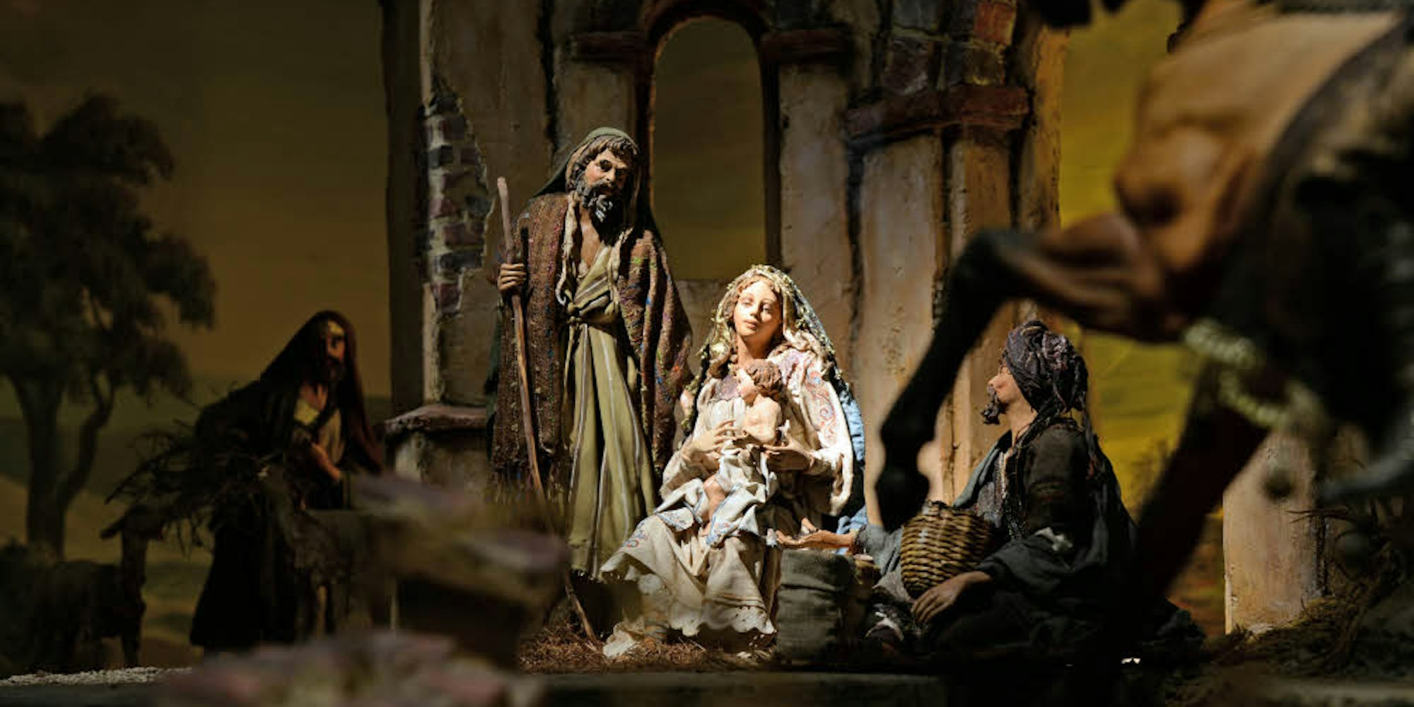 Maria mit dem Jesuskind im Stall von Bethlehem, wo die Heiligen drei Könige dem Sohn Gottes ihre Gaben bringen: Im Advent werden in Kirchen und Wohnzimmern die Weihnachtskrippen aufgestellt.