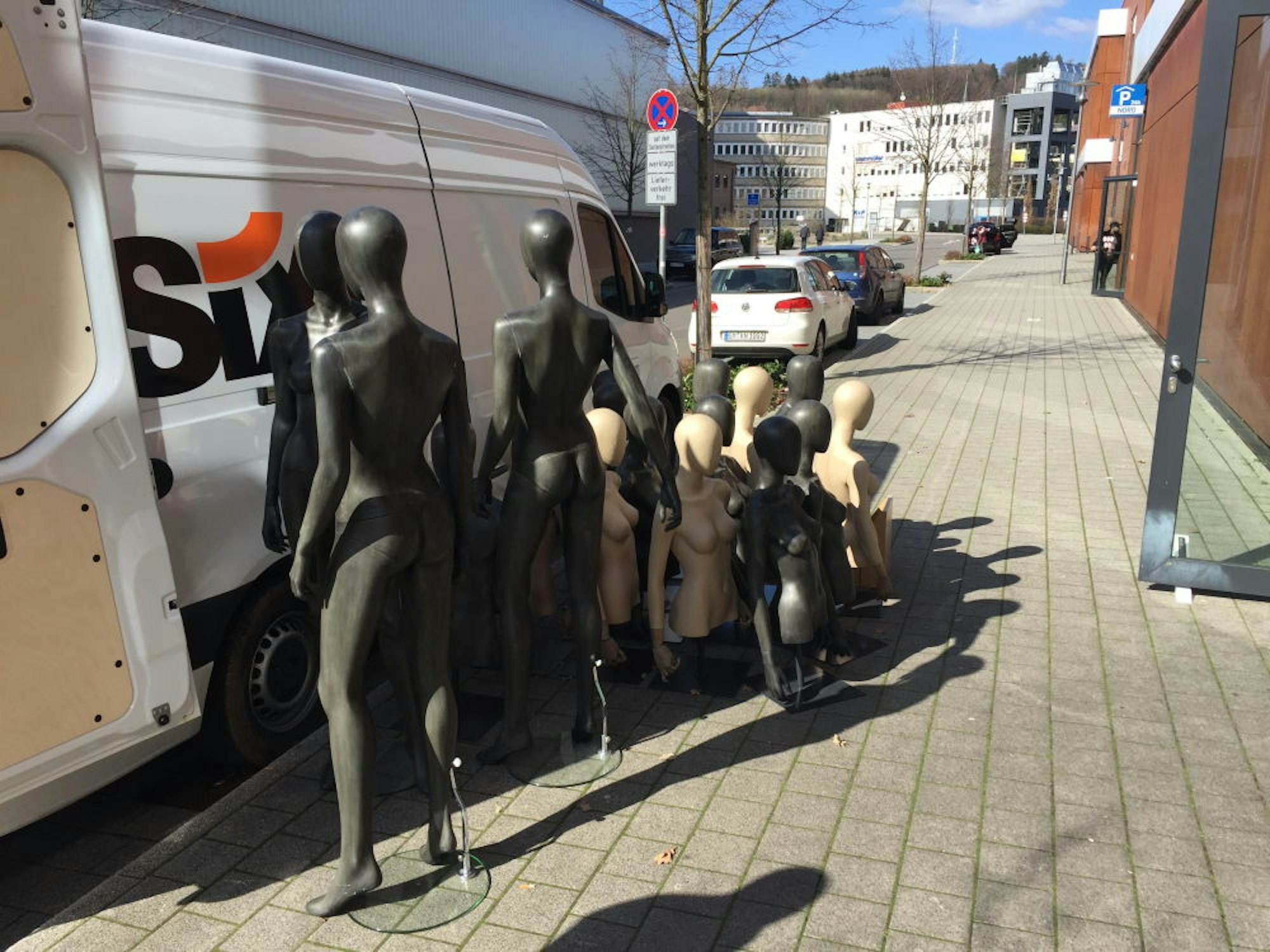 Auf dem Gummersbacher Steinmüllergelände war gegen Mittag von ungewollten Ansammlungen keine Spur – sieht von dem Dutzend Schaufensterpuppen auf dem Bürgersteig ab: Ein Modegeschäft nutzte drinnen die Corona-Zwangspause, um neu zu dekorieren. Der Wachmann am Durchgang zur Kampstraße hatte klare Order: Rein ließ er nur, wer zu einem der ganz wenigen noch geöffneten Geschäfte wollte (Obstgeschäft, Zigarettenladen, Postfächer). Gruppen ab drei Personen mussten draußen bleiben oder konnten einen von ihnen ins Geschäft schicken; Familien durften maximal zu viert sein. Die Gummersbacher Fußgängerzone war um die Mittagszeit so leer, man hätte fast eine Neuauflage des Westernklassikers „12 Uhr mittags“ drehen können.