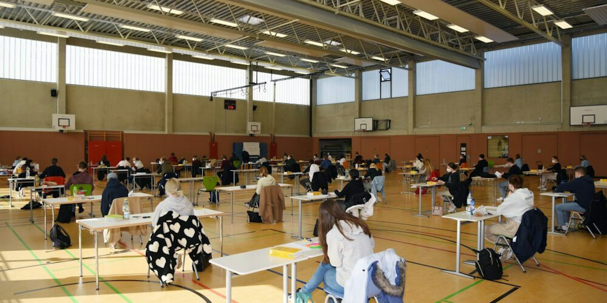 Im Aggertal-Gymnasium Engelskirchen schrieben Schüler in der Turnhalle ihre Englischklausur.