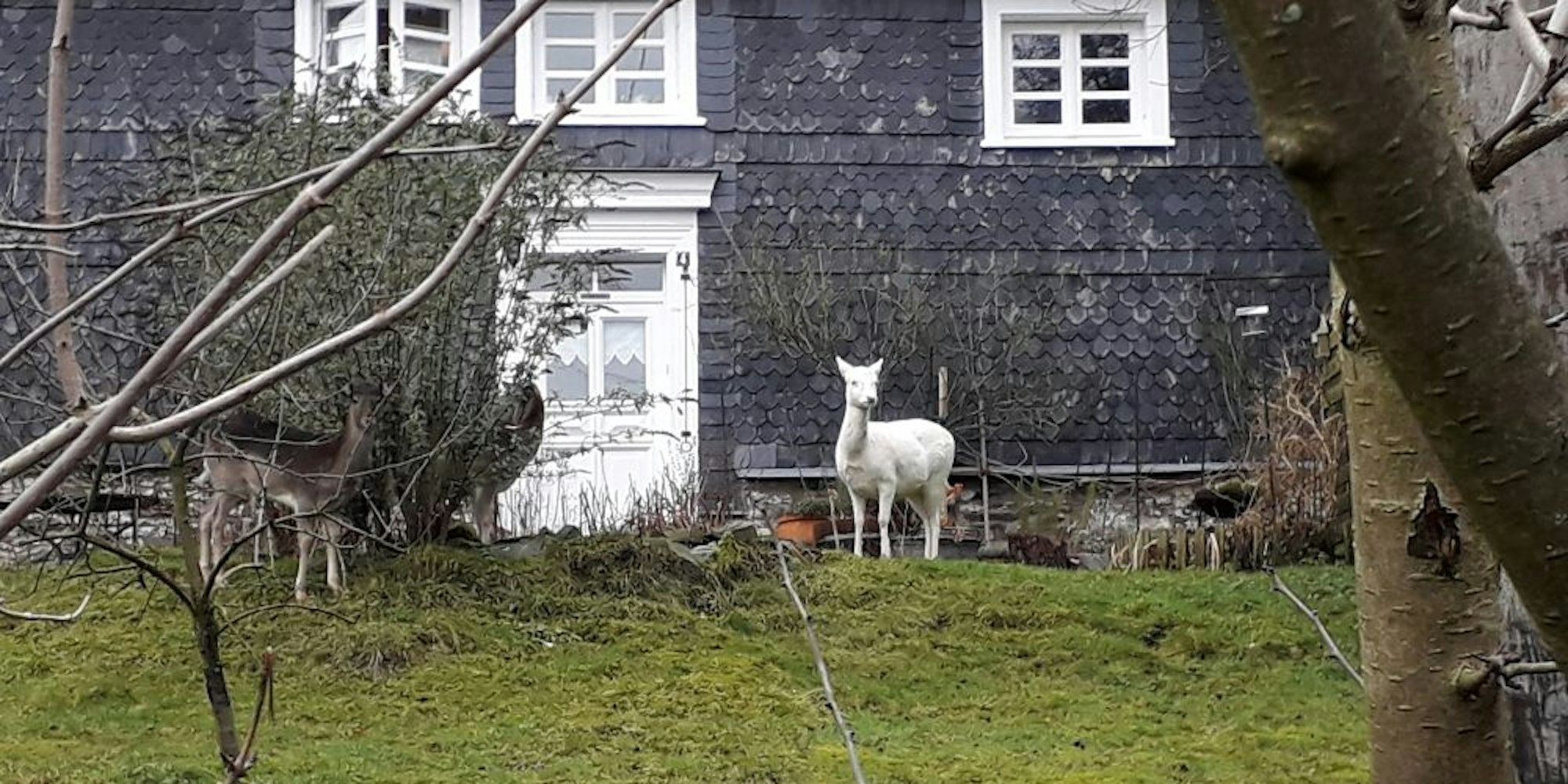 Wallefeld – Eckhard Zimmermann nimmt’s mit Humor: „Wir haben Enten, wir haben Katzen – und wir haben Damhirsche.“ Seit mehr als einem Jahr bewegt sich ein Rudel der Wildtiere völlig ungeniert durch die Vorgärten in Engelskirchen-Wallefeld. Während die Dorfbewohner an den Anblick gewöhnt sind, traut mancher Besucher seinen Augen nicht, wenn er den wenig scheuen Tieren begegnet. Vor allem, weil ein schneeweißes Weibchen dazu gehört.