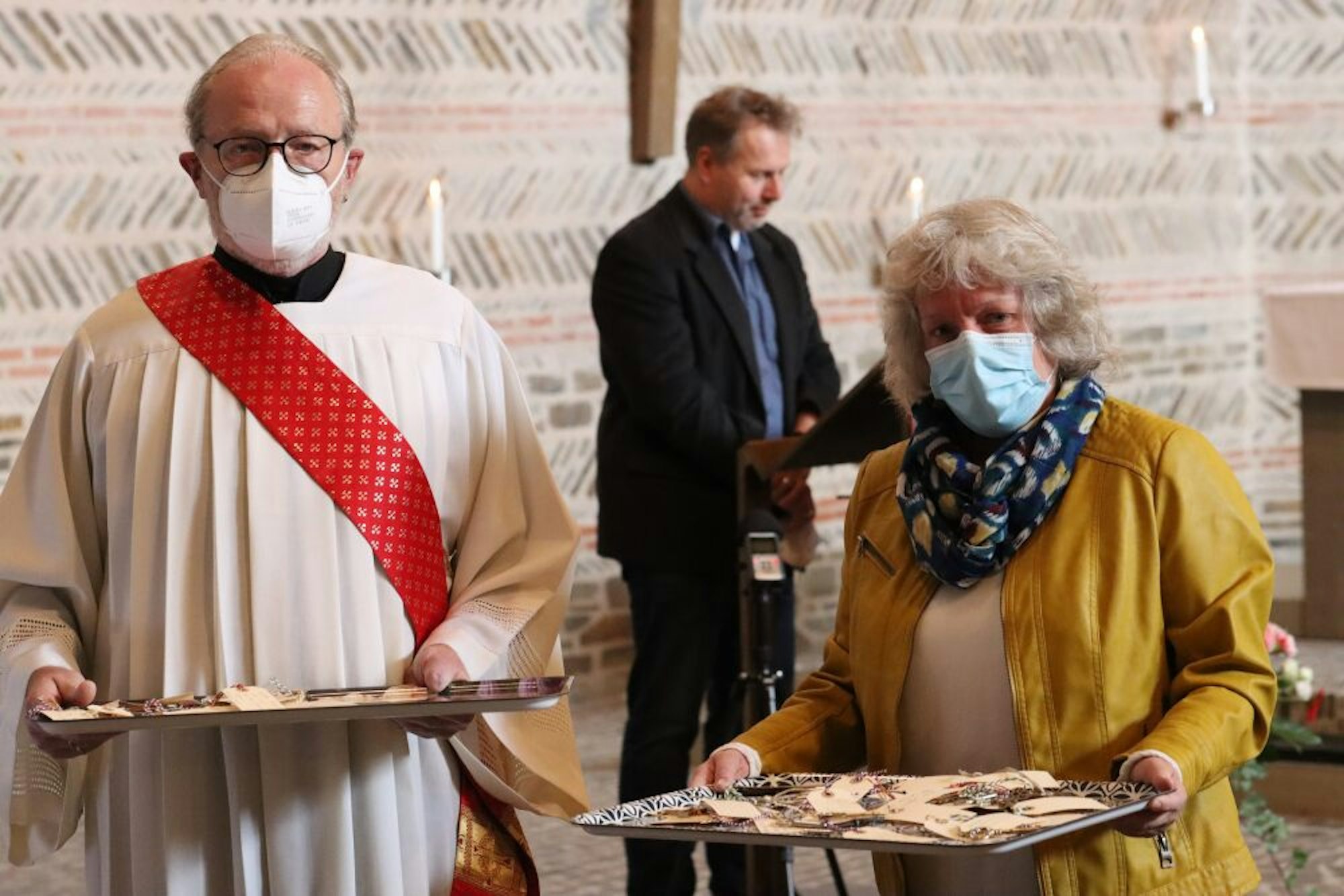 In Wildbergerhütte sammelten Diakon Gregor Veer und Beate Ising die Segensschlüssel ein.