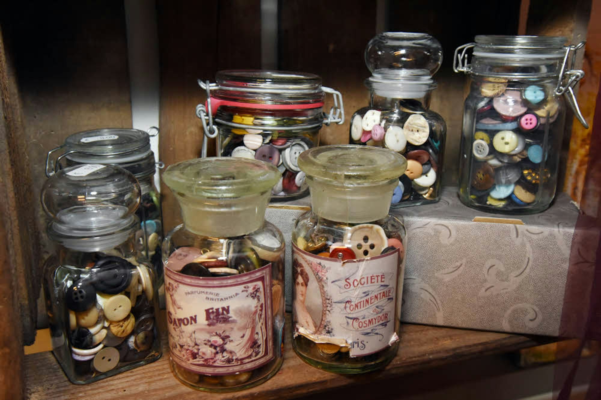 In Gläsern, Schachteln und Tüten lagert Gabi Foerster Tausende von Knöpfen – sie kann gar nicht genug haben.