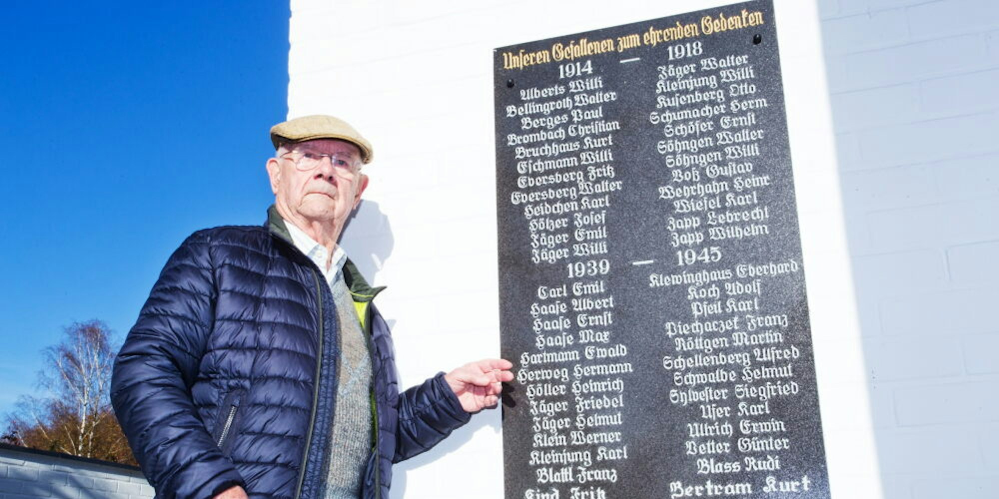 „Wegen der Corona-Beschränkungen fällt die Gedenkfeier diesmal aus“, teilt Bruno Bosbach mit. „Aber es ist natürlich jedem unbenommen, aus eigenem Antrieb hierherzukommen.“ Dem früheren Vorsitzenden des Bickenbacher Turnvereins liegt das Ehrenmal am Herzen. „Ich habe zwei ältere Brüder im Krieg verloren.“