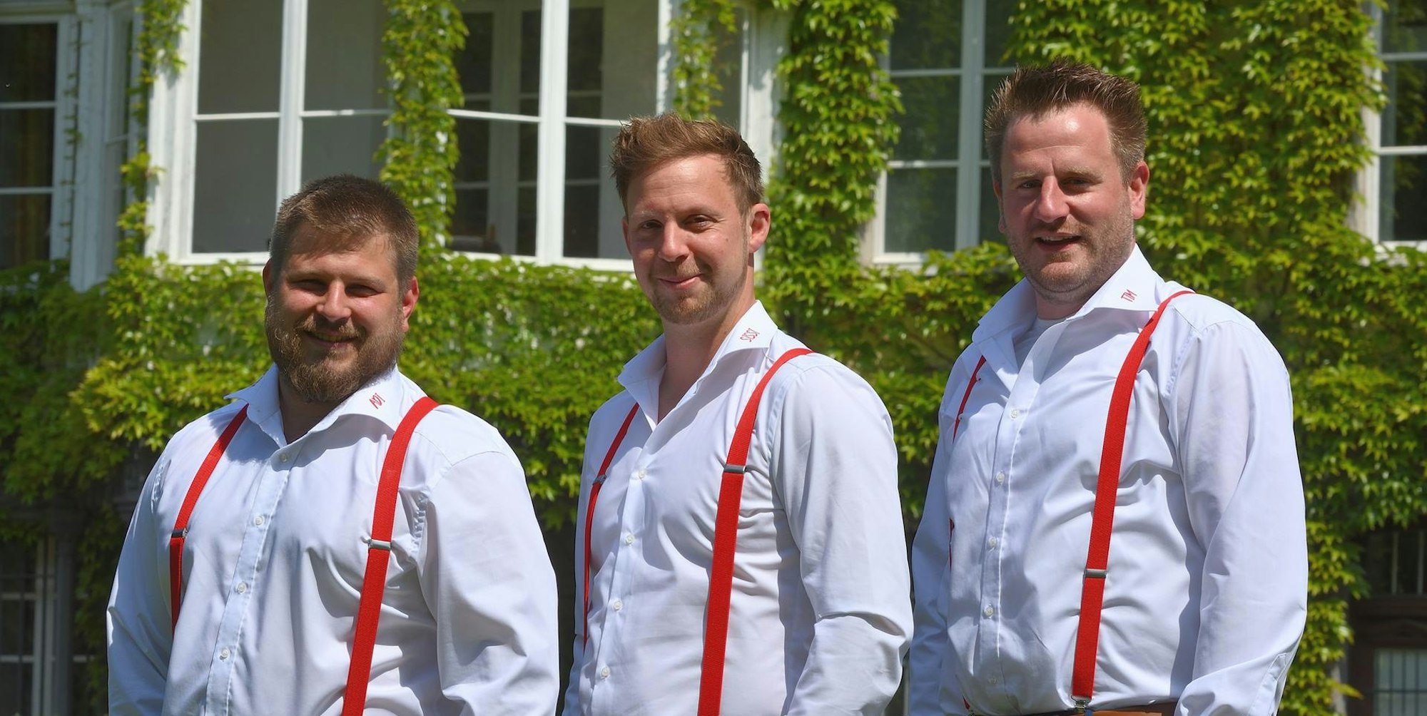 Das neue Trifolium der KG mit Prinz Tim Kretschmann (M.), Bauer Adrian Balogovic und Jungfrau Sascha Buschhaus.
