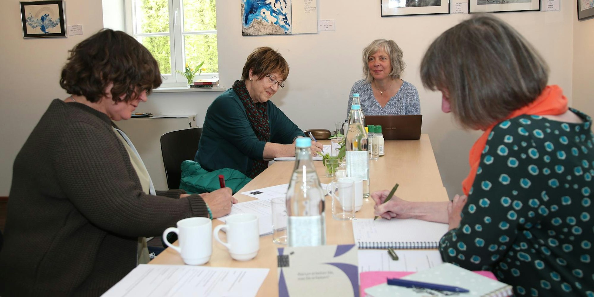 Ihre Gedanken zu ihrem Berufsalltag und dem Wert der Arbeit in ihrem Leben hielten die Workshopteilnehmerinnen gemeinsam mit Regionenschreiberin Ulrike Anna Bleier (M.) schriftlich fest.