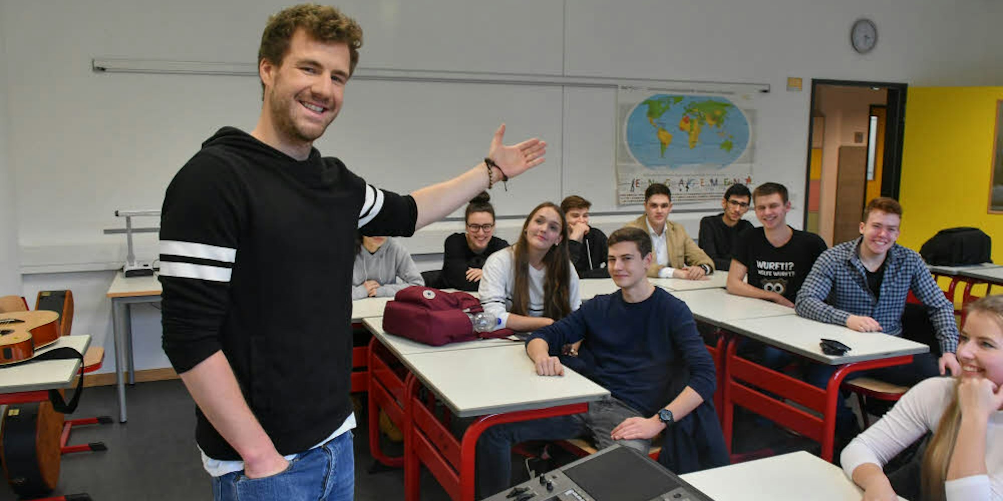 ATG-Oberstufenkoordinator Marc Linßen berichtet: „Luke hat im Unterricht mit den Kindern seine Späßchen gemacht – das war für die Schüler natürlich ein Highlight. Und im Sekretariat hat er einen großen Stapel Autogrammkarten hinterlassen.“ (tie)
