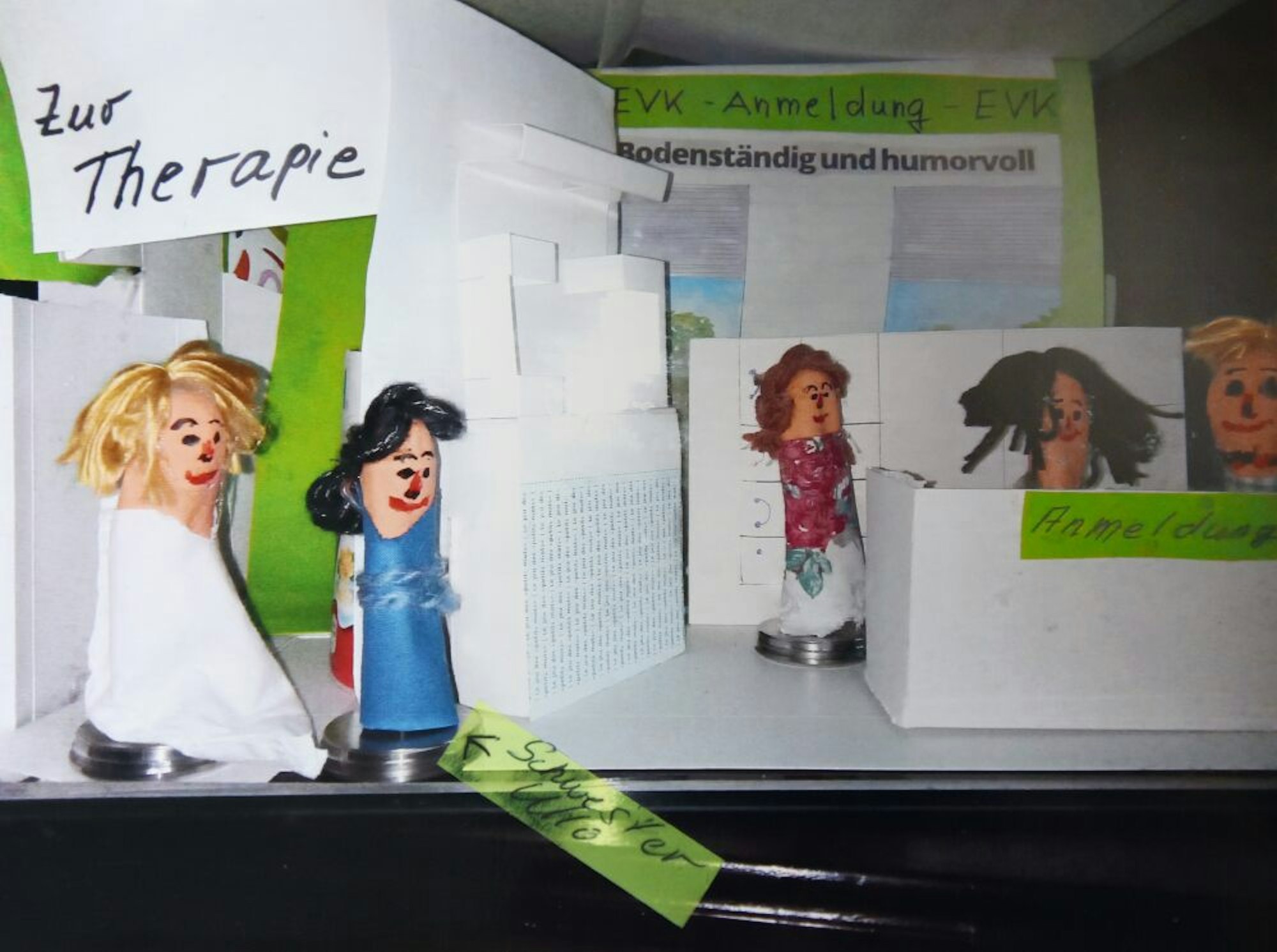 Zum Modell des Brustkrebszentrums, das Sylvia Korn im vergangenen Jahr zu ihrem 100. Infusionstermin angefertigt hat, gehört natürlich auch die Figur von Schwester Ulla (2.v.l.).