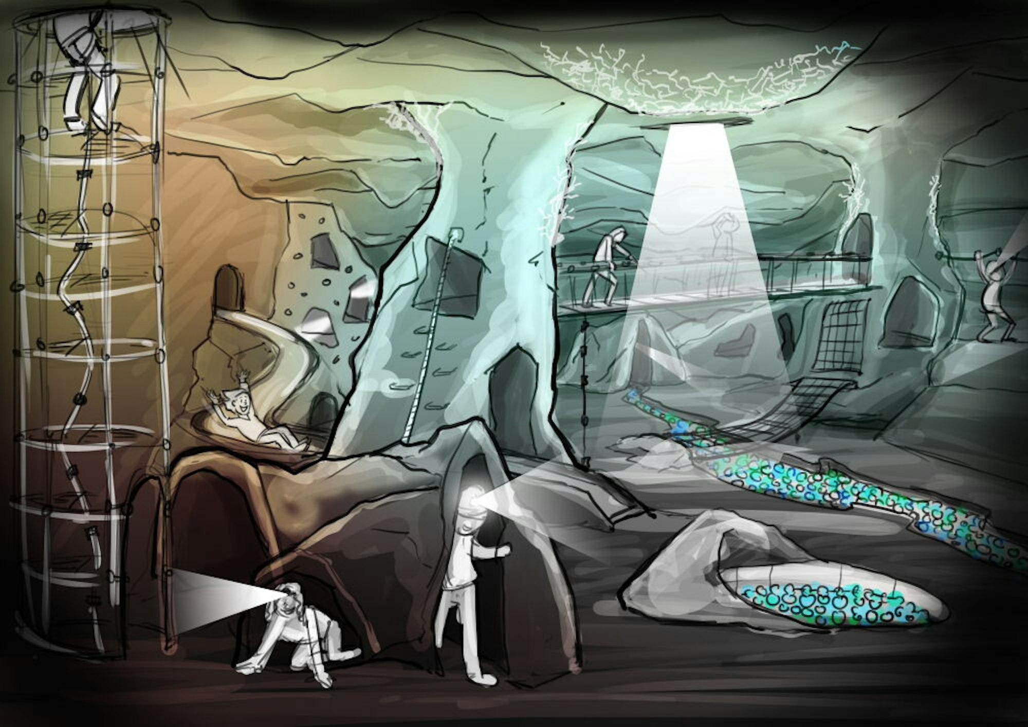 Für kleine Höhlenforscher soll das ganze Erlebniszentrum ein großer Spielplatz sein – mit einem Kriechraum samt Abseilmöglichkeit.