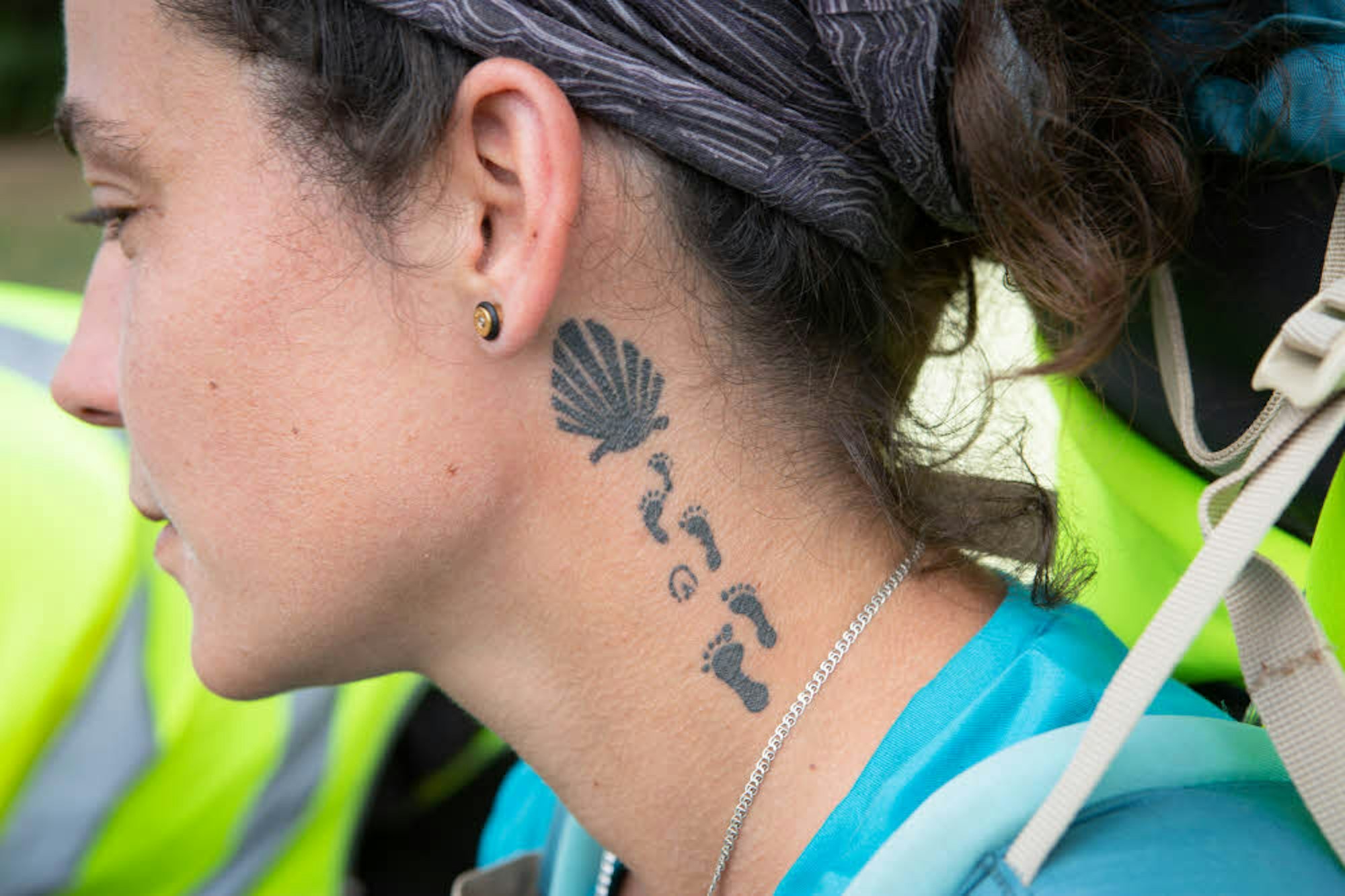 Kristin Himmelreich hat die Jakobsmuschel als Symbol für die Pilgerreise sogar als Tattoo auf der Haut verewigt.