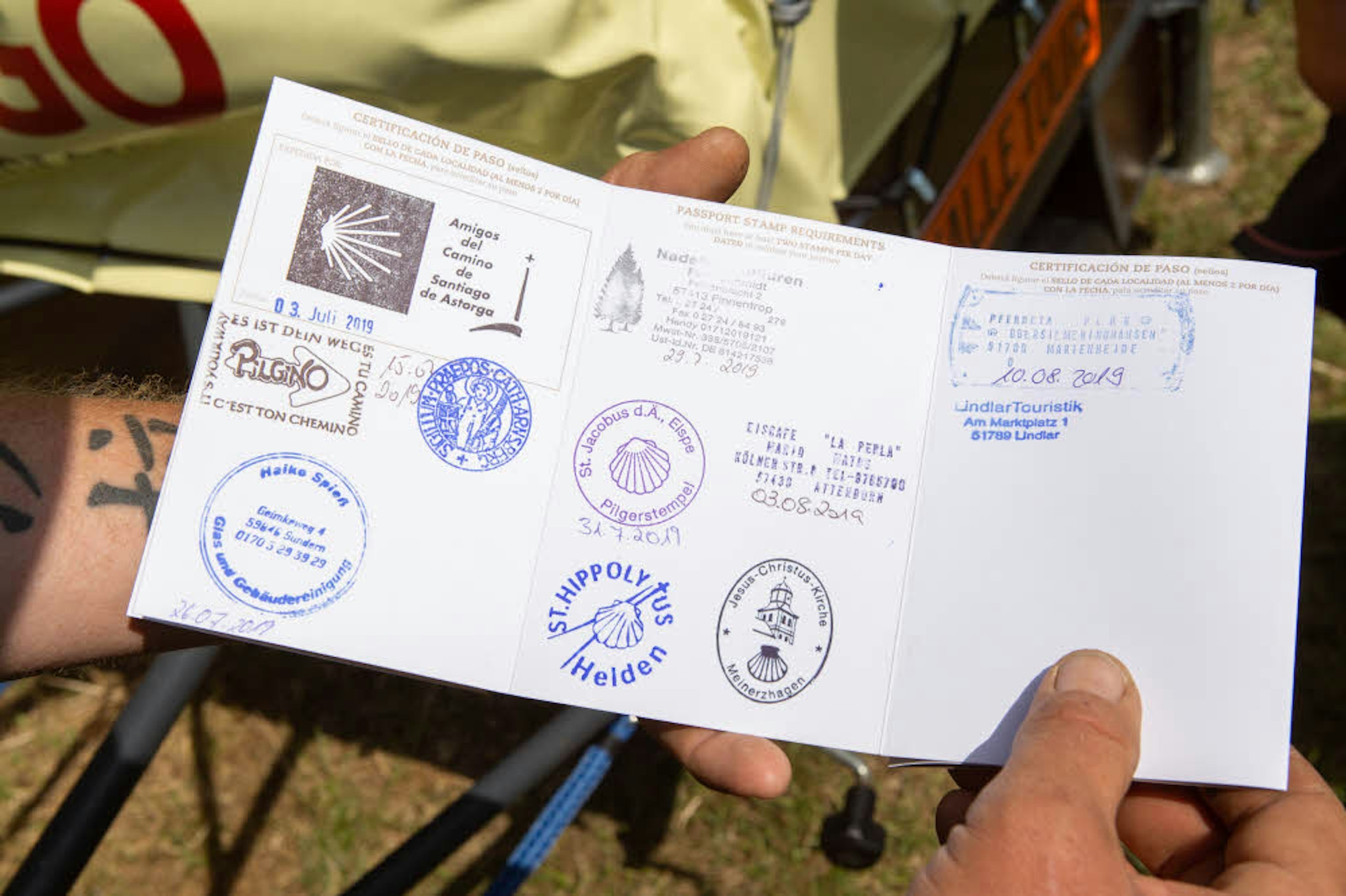 Jeden Morgen packen die Pilger in Ruhe ihre Sachen. „Uhrzeiten und Wochentage gibt es für uns nicht mehr“, sagt Trenkamp. Alle paar Tage wird eine Pause eingelegt – zum Waschen und zum Entspannen. Momentan wandert die Familie täglich zwischen zehn und 15 Kilometern. In ihrem Pilgerpass sammeln sie Stempel von ihren Stationen – als Erinnerung und, um in Santiago die Pilgerurkunde zu erhalten. Je nach Wetter geht es in den kommenden Tagen weiter in Richtung Luxemburg, danach über Frankreich nach Spanien.