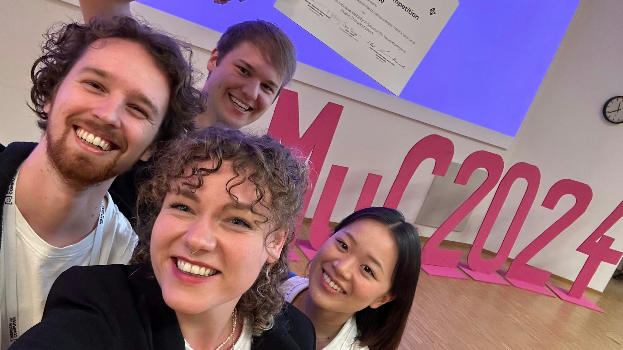 Auf dem dritten Platz bei der Konferenz Mensch und Computer 2024 landeten (v.l.) Finn Maybauer, Leonard Pelzer, Katrin Hartz und Lining Bao (nicht auf dem Foto: Patrick Lang).