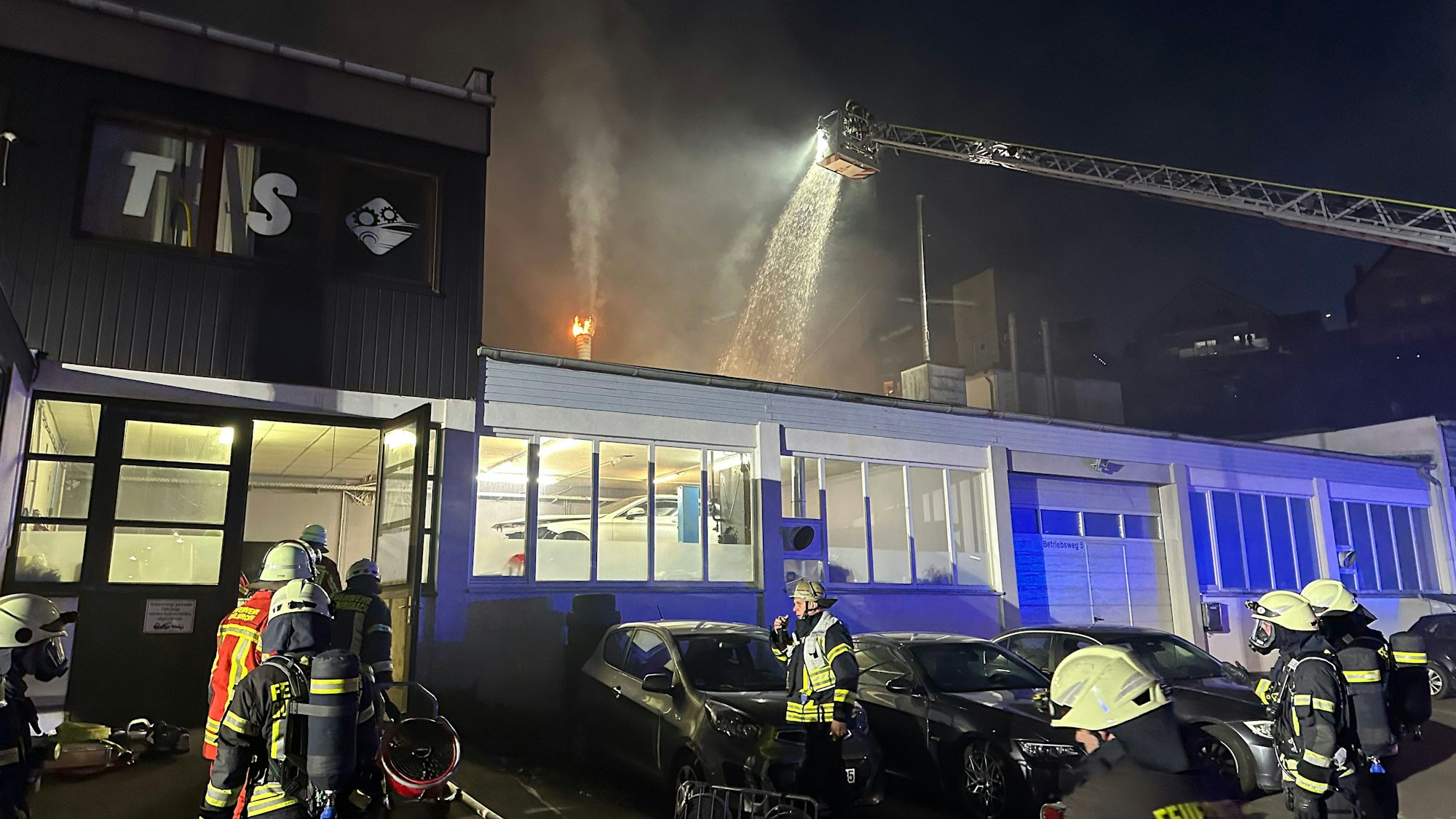 Rund 40 Feuerwehrmänner aus Gummersbach und Engelskirchen waren am Samstagabend über Stunden in Gummersbach-Erbland in einem kleinen Gewerbegebiet unweit der Agger im Einsatz. Was gegen 18.30 Uhr als Kaminbrand und davor noch als das illegale Verbrennen von Abfall gemeldet worden war, entwickelte sich schnell zu einem ausgewachsenen Feuer. Menschen kamen dabei nicht zu Schaden, zur möglichen Ursache konnte am Samstagabend noch keine Aussagen gemacht werden.