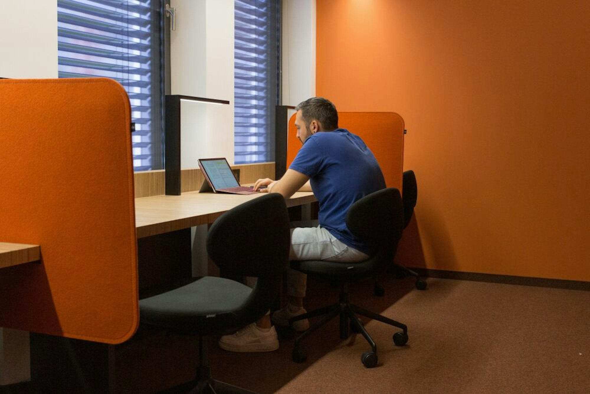 Student Mutlu Gülbasi hat sich fürs Lernen im orangefarbenen Raum entschieden.