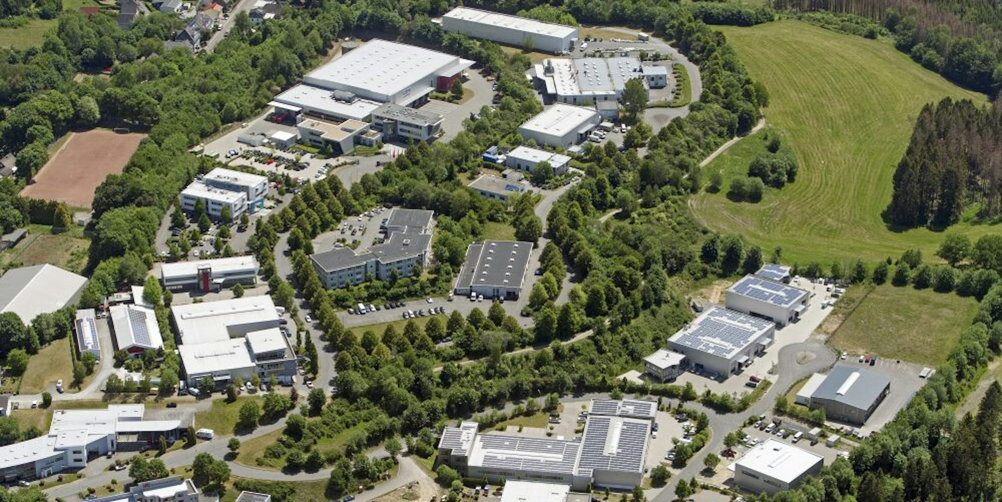 Das Gewerbegebiet Windhagen-West II soll um die grüne Fläche auf diesem Luftbild erweitert werden. Das planen Stadt und Entwicklungsgesellschaft.