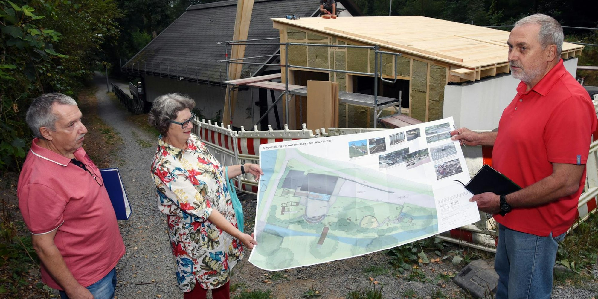 Fertigstellung des Projekts ist für Mitte 2023 geplant, doch bis dahin stehen den Mitgliedern des Vereins noch rund 2000 Stunden Handwerksarbeiten bevor. „Dafür benötigen wir auch weitere Unterstützung, finanzieller Art aber auch Muskelkraft ist gefragt. Wer sich beteiligen möchte, ist willkommen“, appelliert Manfred Pelzer-Zibler an die Bevölkerung. Eine weitere Möglichkeit, das Projekt kennen zu lernen und sich vom Fortschritt der Sanierungs- und Bauarbeiten zu überzeugen, gibt es am Sonntag, 25. September, am „Tag der offenen Baustelle“. „Wir würden uns über eine rege Teilnahme freuen, denn schlussendlich ist die Mühle und auch ihre Umlage nicht nur für die Bewohner des Ortes sondern für jeden in Oberberg“, so Kannen.