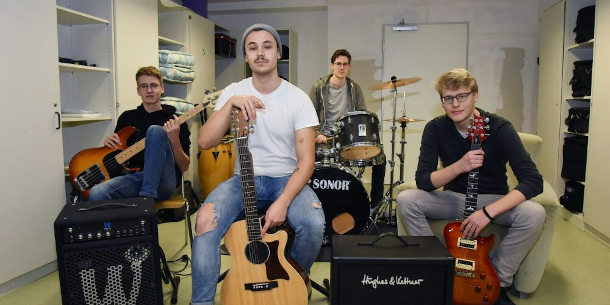 Gummersbach – Es ist nur ein kurzer Moment des Nachdenkens, dann sagt Jerry Ufer (20), Bassist und Sänger der Band Lost Keys, auf die Frage, was Musik für ihn bedeute, nur ein Wort. Aber mit Nachdruck: „Alles!“ Gitarrist Oliver Wichmann (19) sagt, Musik mache ihn glücklich – beim Hören, beim Spielen. Für Drummer Sebastian Brock (18) ist sie ein Ventil, um sich auszudrücken und sich vielleicht besser zu verstehen. Und Luca Verheyden (22), Gitarrist und Sänger, ist überzeugt: „Musik begleitet das Leben. Sie ist das Mittel zu allem.“