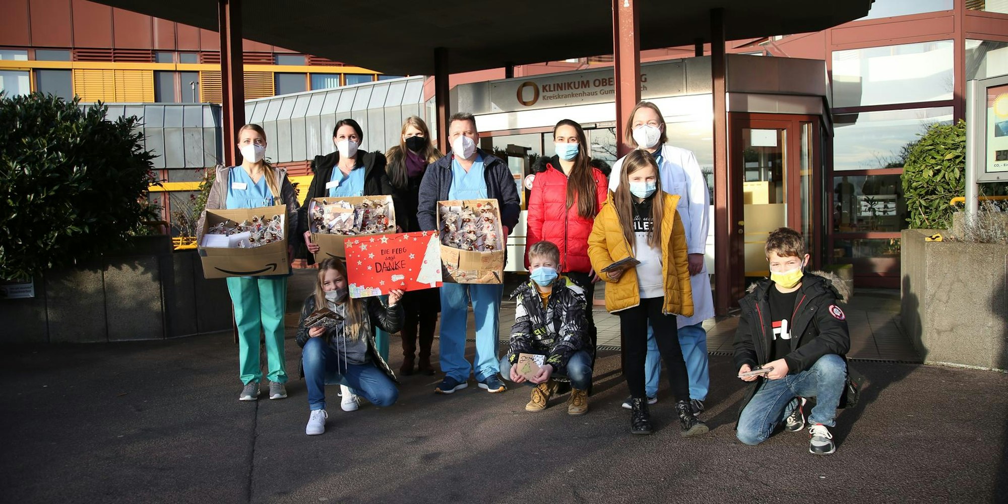 Bei den Mitarbeitern der Klinik kamen die Aufmerksamkeiten gut an, die die Schülerinnen und Schüler der Freien Christlichen Bekenntnisschule Gummersbach vorbeibrachten.