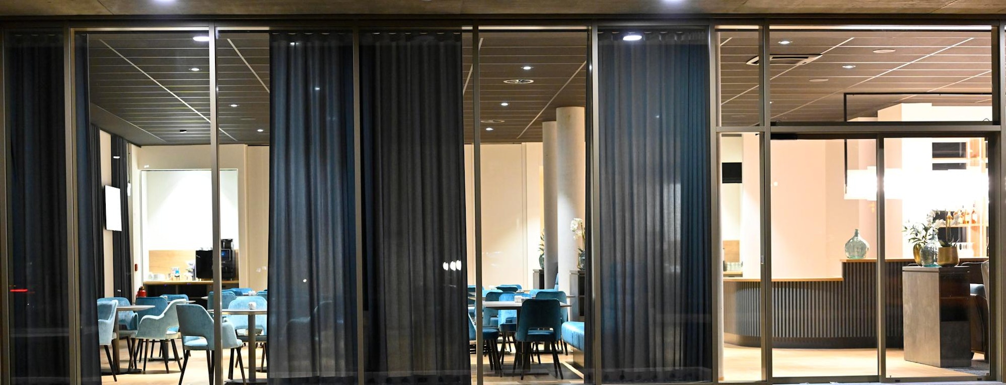 Große Fenster gewähren gerade abends Einblicke ins Hotel-Innere.