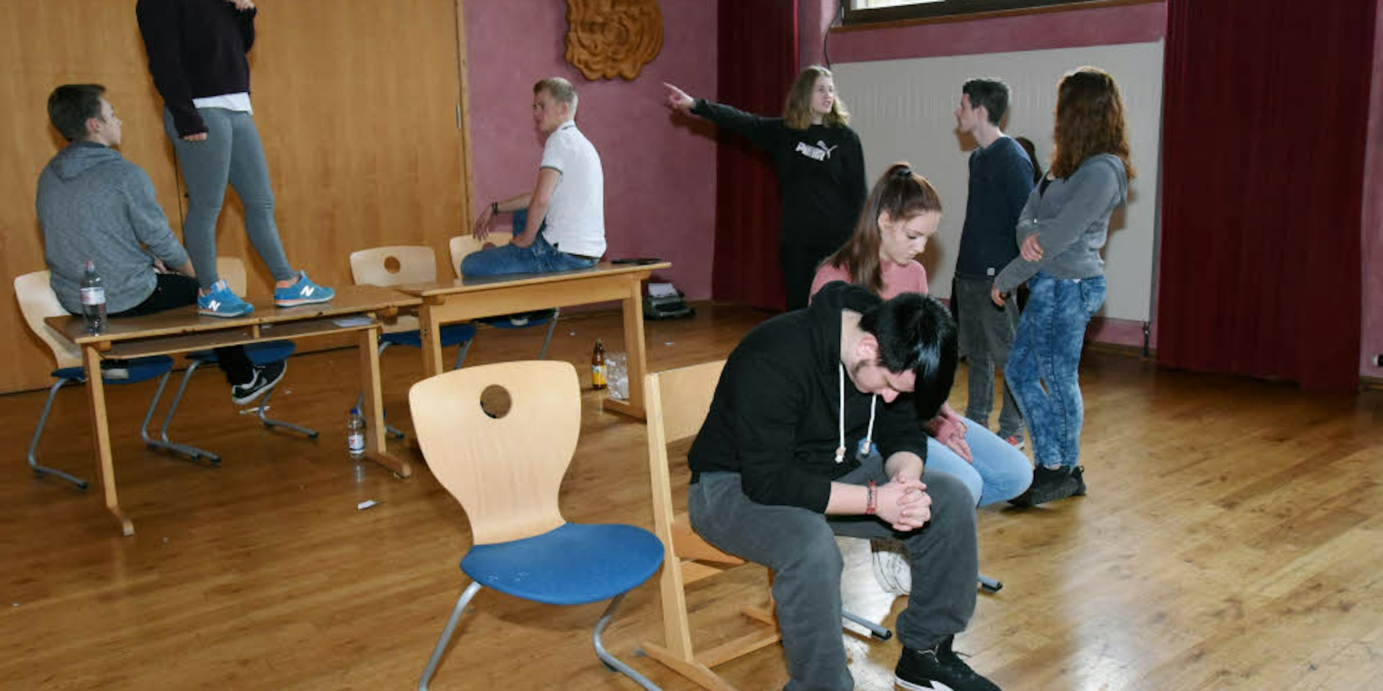 Die 17- und 18-jährigen Schüler sind von der Stückauswahl an über die Bearbeitung, Besetzung und Gestaltung einbezogen. Proben fanden auch mitten in den Herbstferien statt.