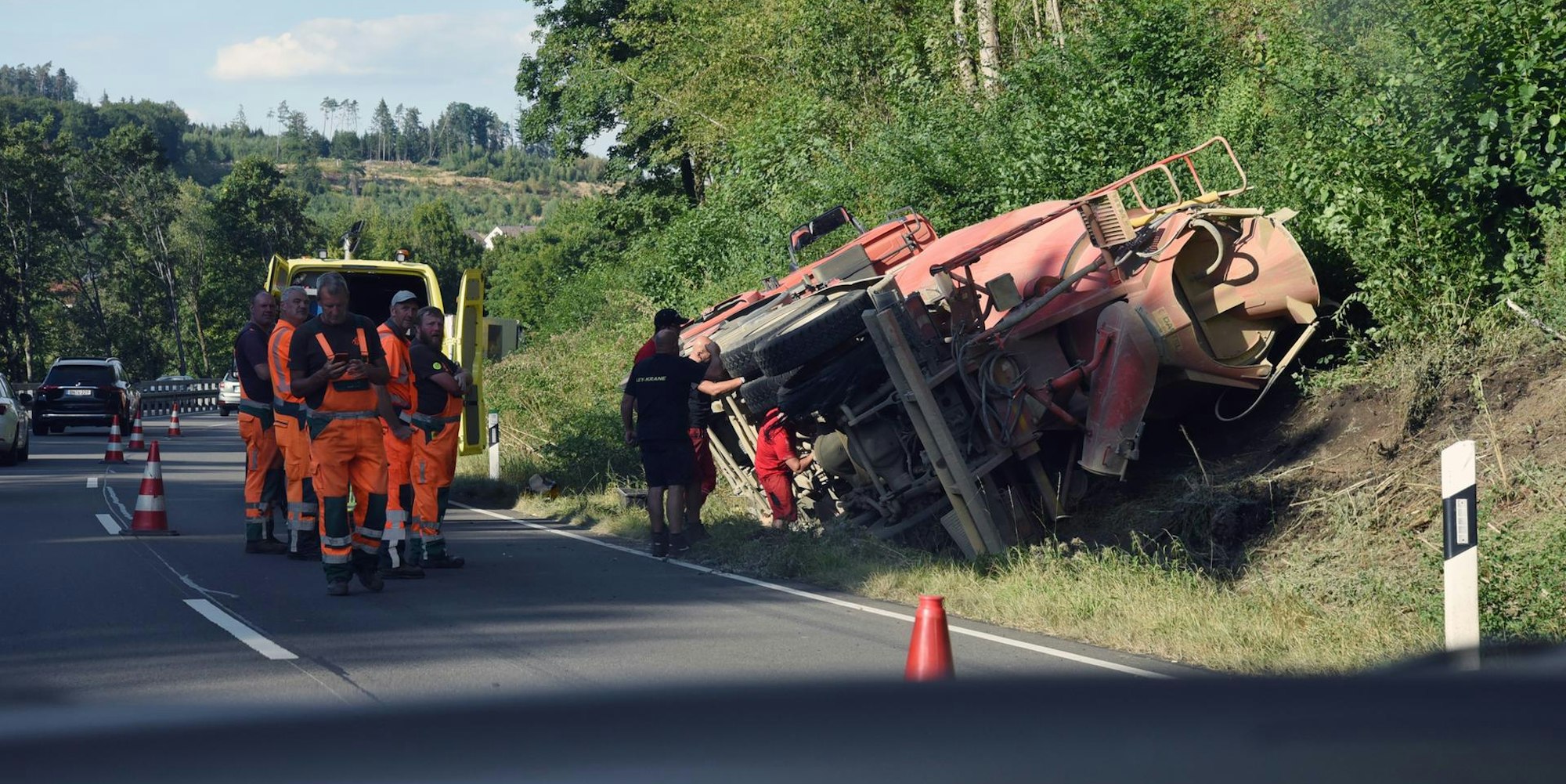Betonmischer umgekipptGummersbacher Westtangente blieb am Donnerstag lange gesperrt