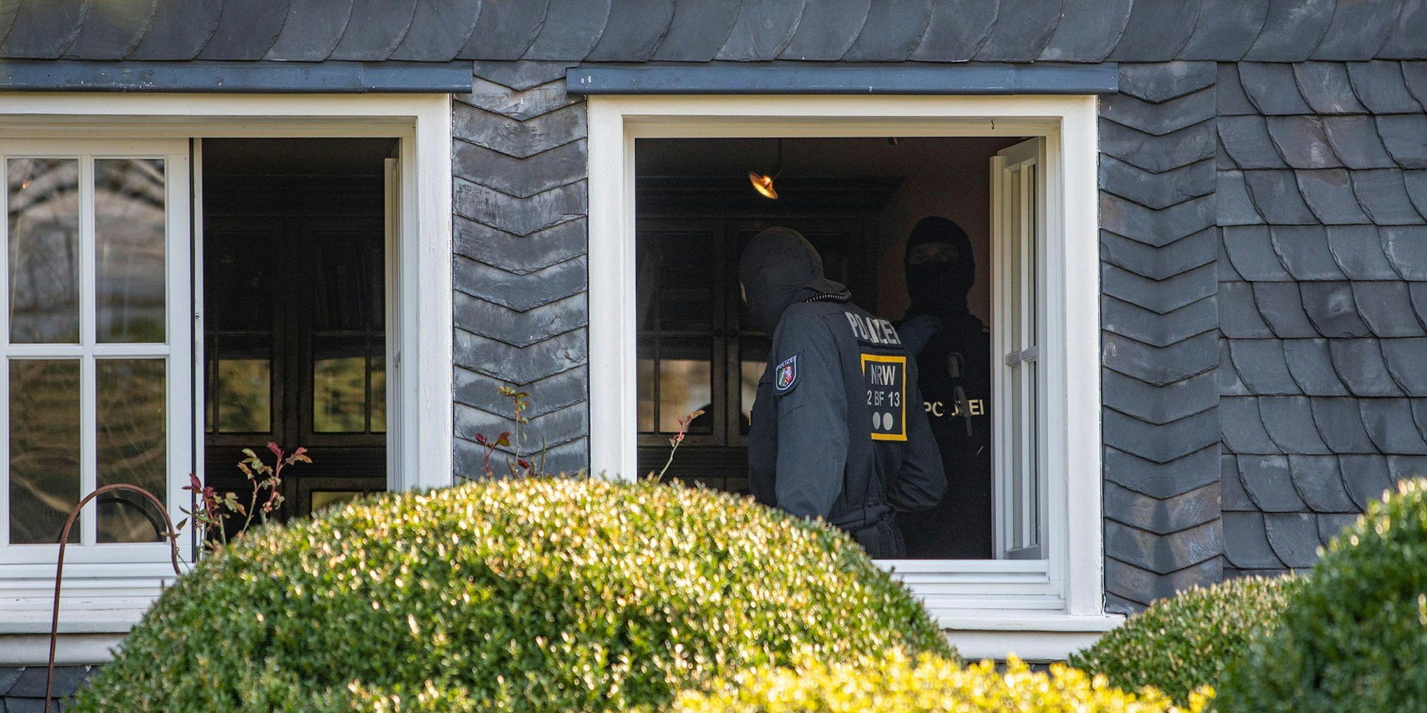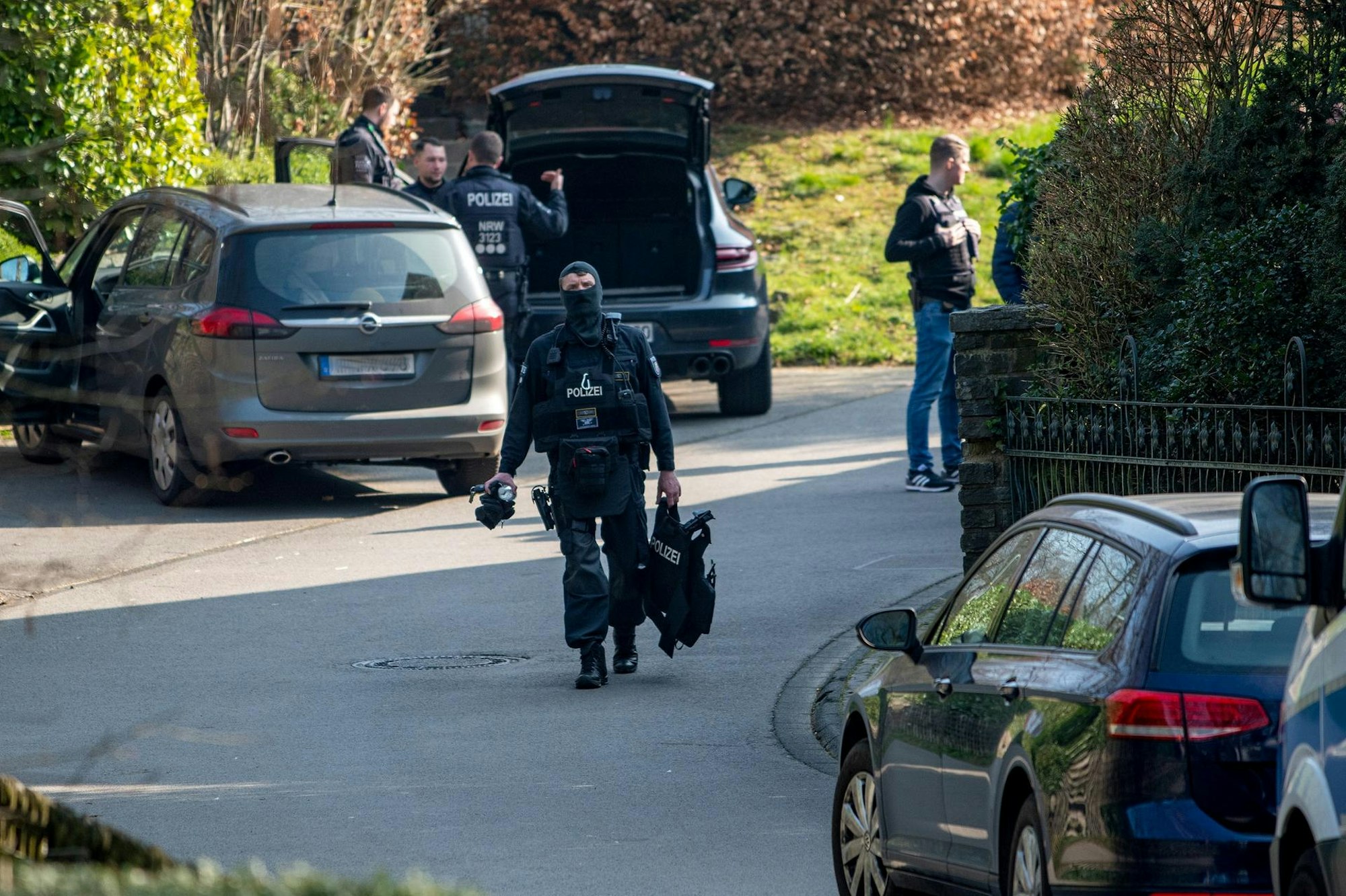 Spezialkräfte der Polizei Donnerstag in Windhagen: Bundesweit waren mehr als 400 Beamte im Einsatz, um mit Hausdurchsuchungen gegen führende Mitglieder des seit Donnerstag verbotenen Vereins „Geeinte deutsche Völker und Stämme“ vorzugehen.