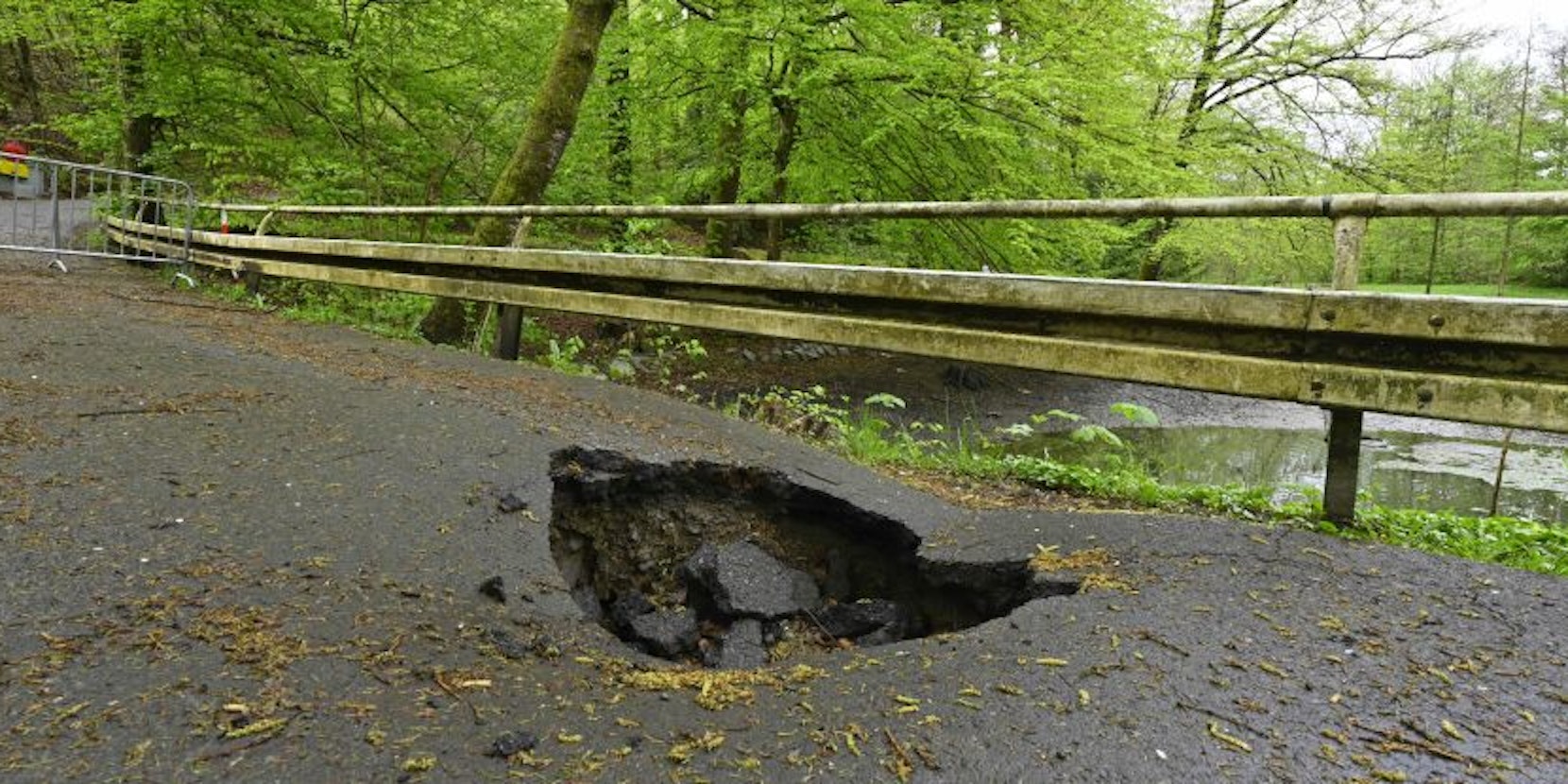 Steinenbrück – Ein mächtiger Krater tut sich auf dem Damm von Köhlers Teich in Gummersbach-Steinenbrück auf. Die schmale Fahrbahn über den Damm ist in Teilen eingebrochen und der Asphalt regelrecht im Erdreich verschwunden. Zudem tritt Wasser unkontrolliert aus dem Teich aus. Die Stadt Gummersbach als Eigentümerin der Teichanlage hat umgehend auf den Erdbruch reagiert und den Damm mit Baken abgesperrt und mit Ketten gegen ein unbefugtes Wegräumen gesichert. Der Teich selbst wurde derweil weitgehend abgelassen und der Fischbestand abgefischt, wie Stadtsprecher Siegfried Frank auf Nachfrage dieser Zeitung sagte. So weit der Ist-Zustand. Doch wie geht es weiter?