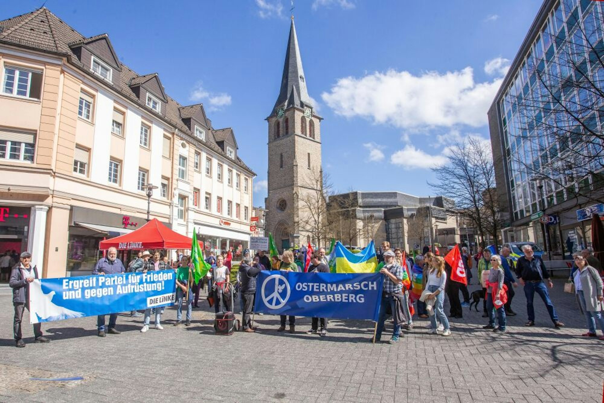 Gummersbach – „Frieden – Verhandeln statt töten“, „Nur Pazifismus schafft Frieden“ und „Alle Waffen morden – egal, wer sie nutzt“: Das sind nur drei der vielen Botschaften, die beim Ostermarsch in die Stadtmitte Gummersbachs auf und Schildern und Bannern zu lesen waren.