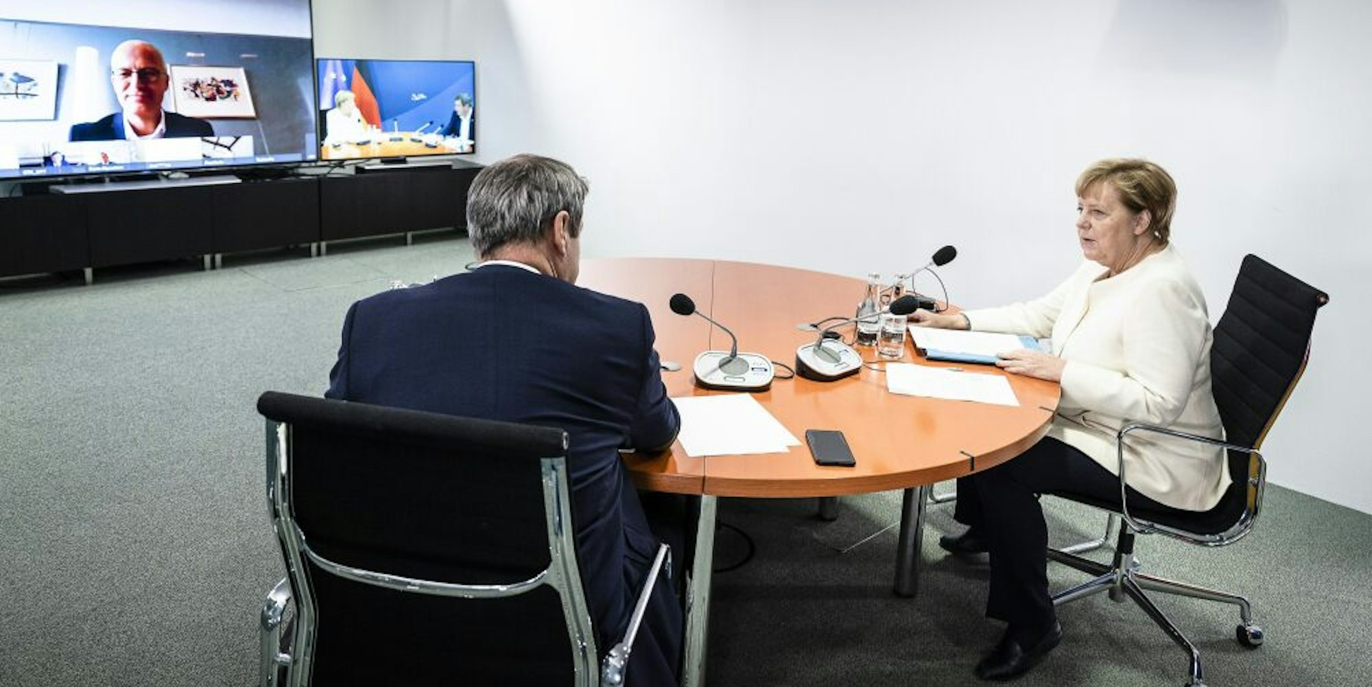 Konferenz mit der Kanzlerin: Nicht nur mit den Ministerpräsidenten (Bild) sprach Angela Merkel zuletzt via Video, sondern auch mit einer Bürgermeister-Runde zur Flüchtlingsfrage, an der auch Gummersbachs Frank Helmenstein teilnahm.