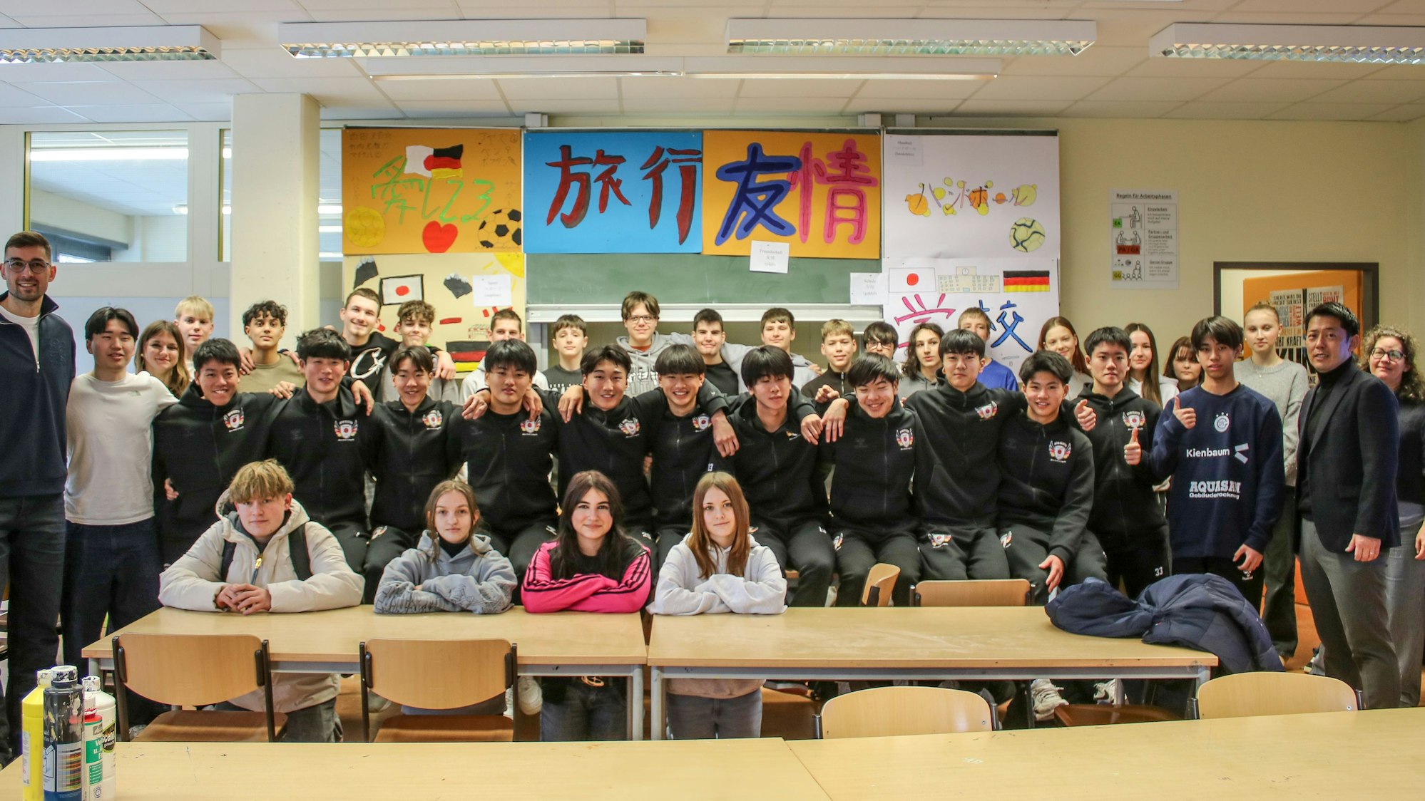 „Freundschaft“ und „Handball“ sind nur zwei Begriffe, die die Schülerinnen und Schüler der Gesamtschule Marienheide gemeinsam mit ihren japanischen Gästen während des Kunstunterrichts in Schriftzeichen malen. Auch wenn sie nicht dieselbe Sprache sprechen, der Austausch über das Projekt klappt. Zum zweiten Mal ist eine Gruppe japanischer Handballer zu Gast im Oberbergischen, trainiert mit den B-Junioren des VfL Gummersbach, spielt gegen die Schulmannschaft der Gesamtschule und war beim Sieg der Bundesligamannschaft des VfL in der Schwalbe-Arena.