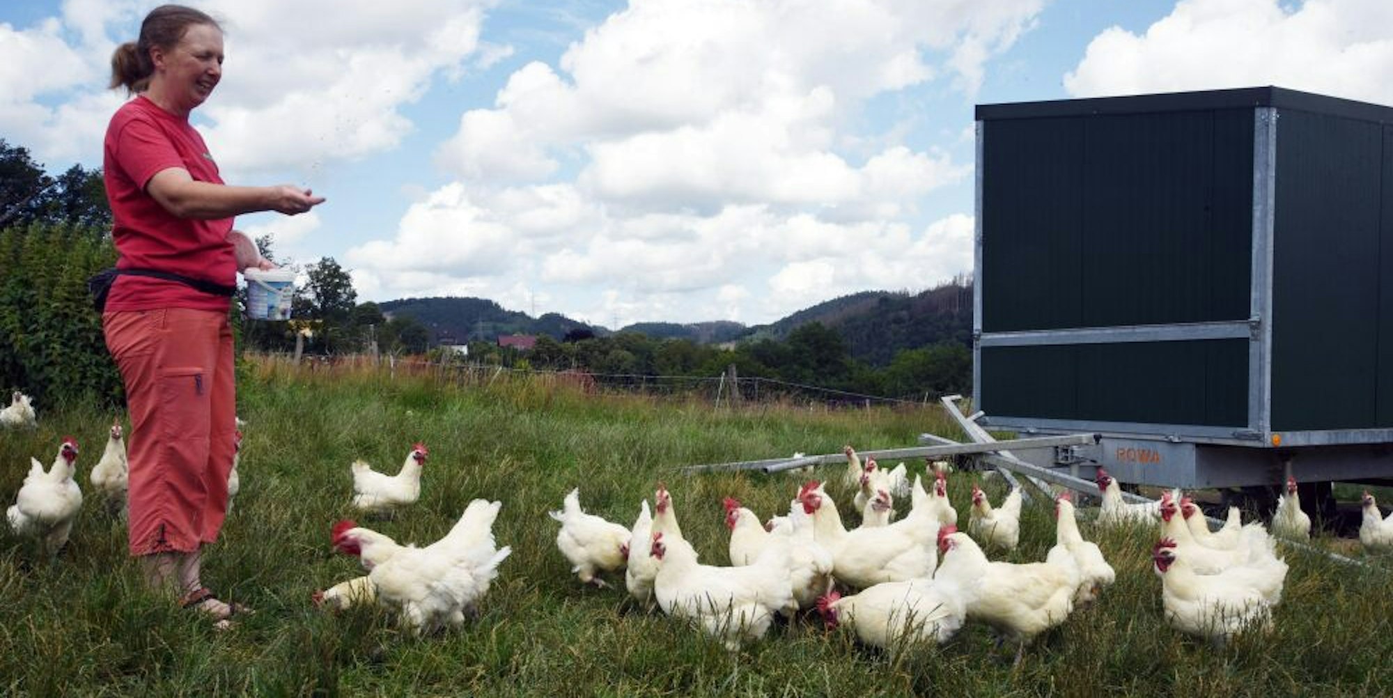 Lachend erzählte Schulte zudem, dass sie besonders die Rasse Zwerg-Cochin mag, da diese Hühner nicht scharrten. Die hätten nämlich Federn an den Füßen und diese würden sie sich wie vornehme Damen nicht schmutzig machen wollen. Auf dem Hof gebe es vorwiegend Mechelner, eine belgische, vom Aussterben bedrohte Rasse, und Bresse, die auch „Les Bleues“ genannt wird und mit ihren blauen Füßen, den weißen Federn und dem roten Kamm die Farben der französischen Flagge trägt.