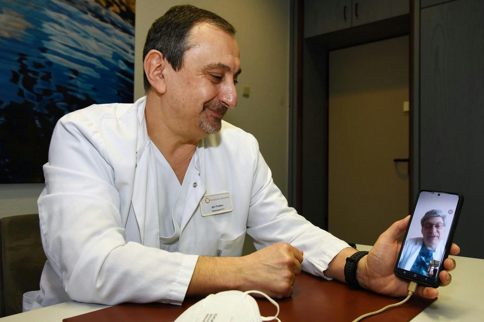Gummersbach/Charkiw – Ja, es ist Krieg, aber Igor Prudkov muss schmunzeln. „Mein Freund“, sagt der 59-jährige Klinikarzt, „hat mich gefragt, in welcher Sprache wir beide uns unterhalten: auf Ukrainisch oder auf Russisch – in der Sprache des Angreifers.“ Ein Scherz unter Freunden: Denn beide, sowohl Prudkov als auch Dr. Vitaliy Prascel, Chefarzt der Gefäßchirurgie im Krankenhaus Charkiw, der per Video-Telefonat von seiner Arbeit in einer belagerten Stadt erzählen will, sind mit der russischen Sprache aufgewachsen. Und Prudkov, der seit 2004 in Deutschland ist und seit 2009 als Psychiater für das Klinikum in Gummersbach arbeitet, fällt es fast sogar schwerer, das nicht mehr so gewohnte Ukrainisch zu sprechen.