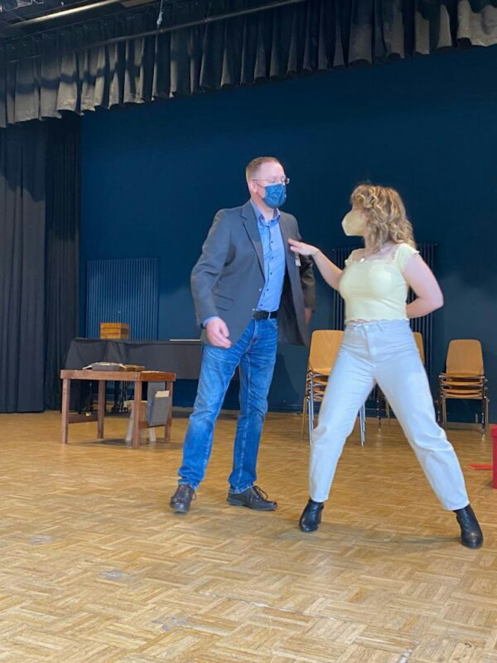 Die große Herausforderung war, das knapp zweistündige Stück auf Abstand einzustudieren. Tatsächlich lief zu Beginn alles per Internet-Videokonferenz: In Kleingruppen aufgeteilt bereiteten sich die Tänzer, Sänger und Schauspieler separat auf ihre Rollen vor. Erst im Januar kam das gesamte, insgesamt 23-köpfige Ensemble erstmals komplett zusammen.