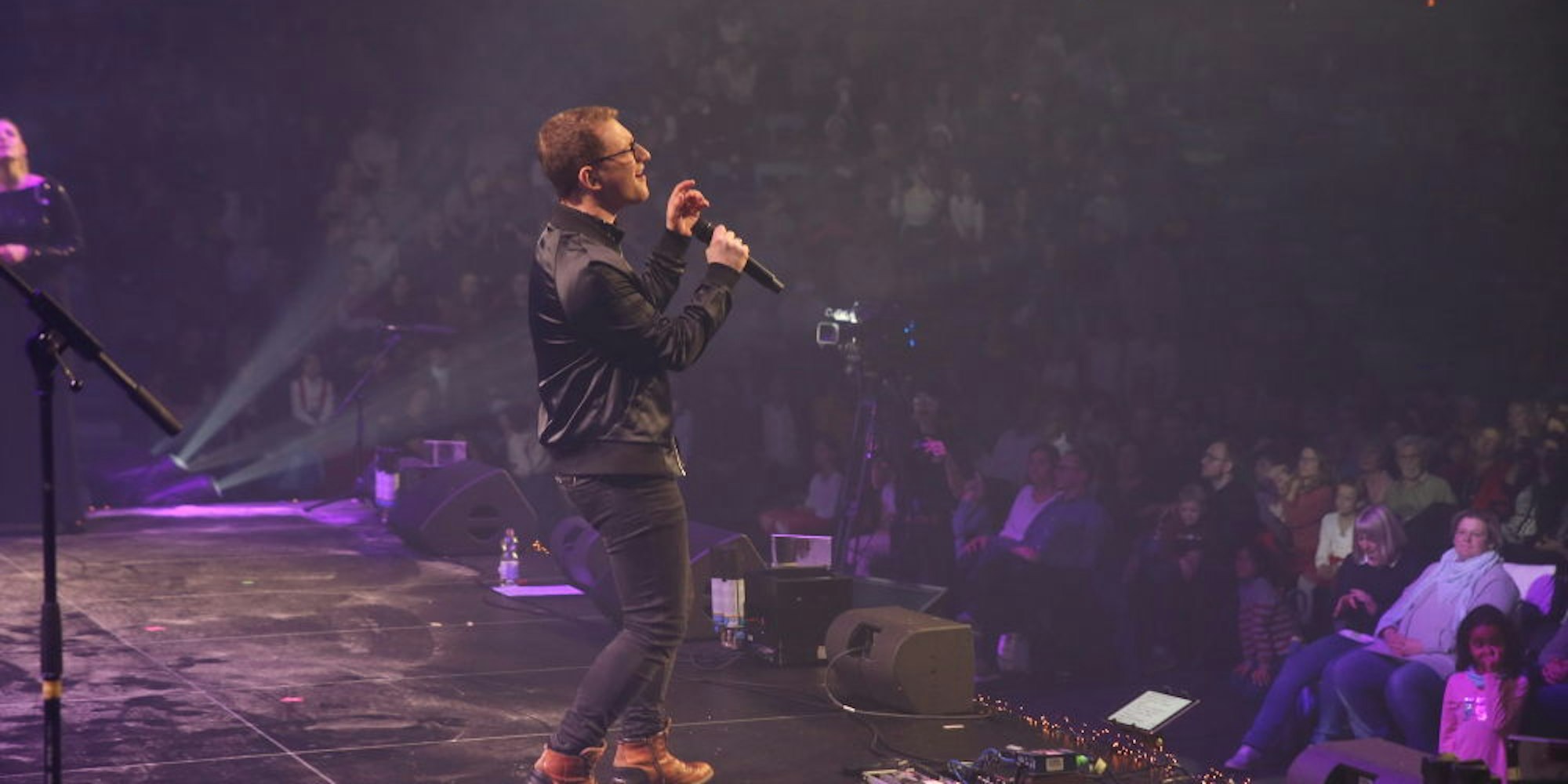 Gummersbach – Weihnachtslieder zu singen, sagt Samuel Rösch, das gehöre für ihn von Kindesbeinen an dazu: „Sie sind etwas Besonderes, vor allem weil es ja nicht nur Lieder sind, sondern darin eine Botschaft steckt.“ Trotzdem war es auch für Rösch, der 2018, als er die achte Staffel von „The Voice of Germany“ gewonnen hatte, gestern eine Premiere, auf großer Bühne mit so vielen Menschen genau diese Lieder zu singen: Erstmals veranstaltete die „Kirche für Oberberg“ unter dem Titel „Oberberg singt“ ein solches Weihnachtsliedersingen in der Gummersbacher Schwalbe-Arena.