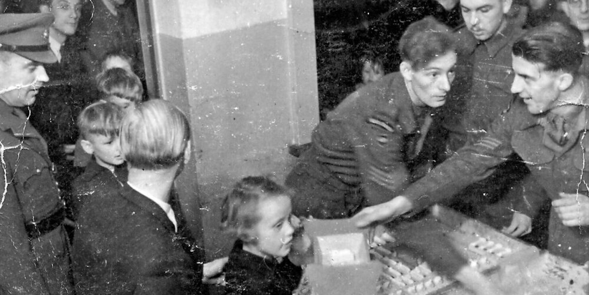 Zum Weihnachtsfest 1945 verteilen britische Soldaten Geschenke an die Kinder. Auch ein Jahr später bestimmte in Oberberg noch der Mangel das Christfest.