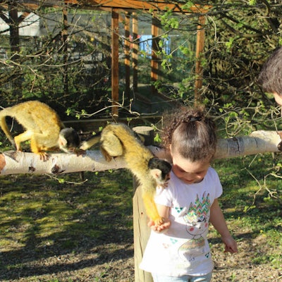 Auch bei den Schleiereulen hockt ein junger Vogel im Nest, Namensvorschläge können an der Kasse abgegeben werden. Bemerkenswert sei, dass seine einjährige Schwester bis zu ihrem Schlüpfen im Kasten gehockt habe – ein echtes Nesthäkchen also. Die Uhuküken Henriette und Ludwig sind sieben Wochen alt und hüpfen vergnügt durch das Tropenhaus. Wellen- und Nymphensittiche, Kanarienvögel und Diamanttäubchen brüten noch, während die Küken der Kanadagänse zwischen den Berberaffen schon auf Futtersuche gehen.