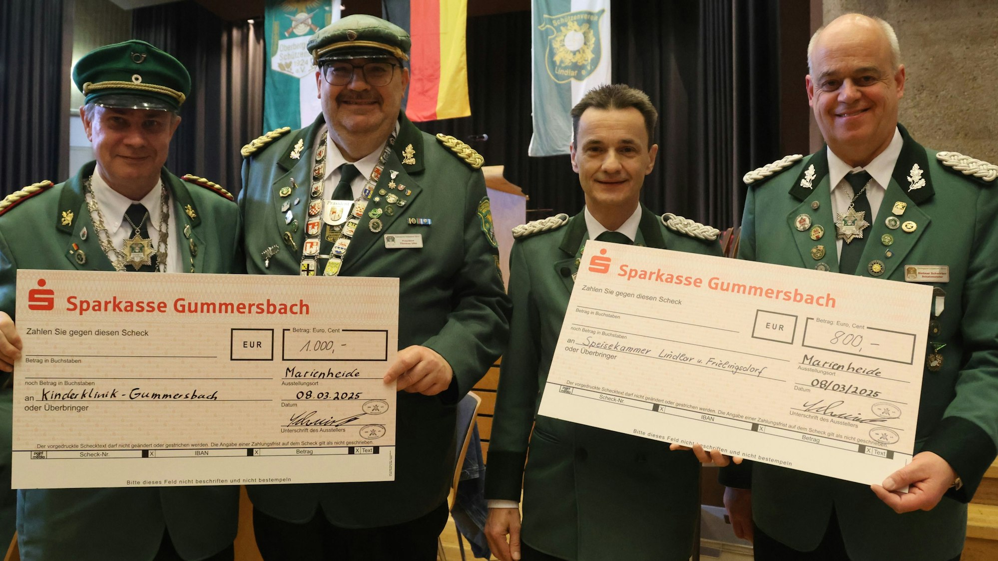 Bei der traditionellen Hutsammlung kamen diesmal gut 900 Euro zusammen, die von mehreren Spendern auf insgesamt 1800 Euro aufgestockt wurden – 1000 Euro für die Kinderklinik Gummersbach und 800 Euro für die „Speisekammer Lindlar & Frielingsdorf“. Musikalisch begleitet wurde die Veranstaltung vom Musikverein Lindlar unter Leitung von Stefanie Deckers.