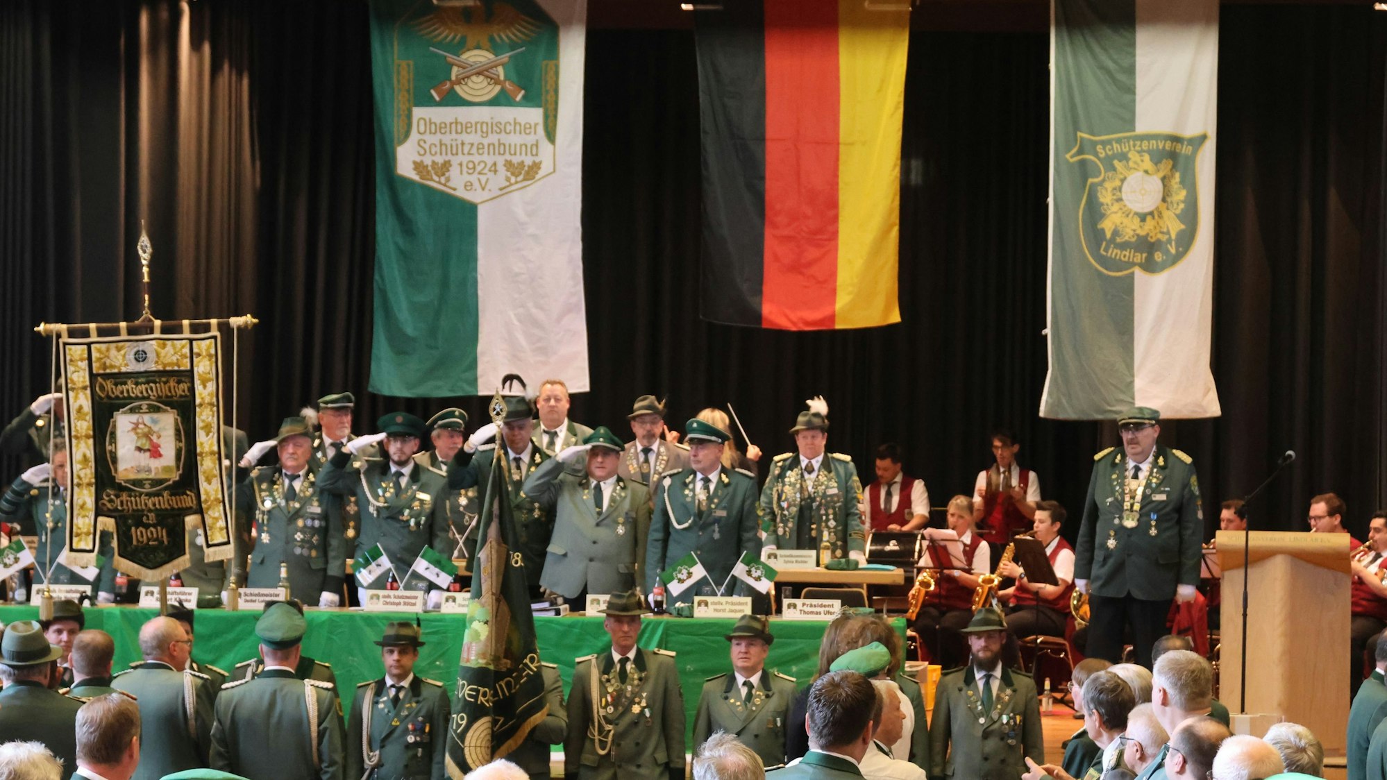 Zuvor hatte Ufer dem Schützenverein Lindlar unter dem Vorsitz von Alexander Bosbach für die Ausrichtung der Veranstaltung gedankt. „Die Schützen haben einen erheblichen Anteil am gesellschaftlichen Alltag“, zollte Bürgermeister Georg Ludwig den Grünröcken Respekt. „Schützen sind ein lebendiger Teil der Kultur“, sagte auch Kreisdirektor Klaus Grootens in seinem Grußwort. Ohne ins Detail zu gehen, schilderte er, dass sich nach den jüngsten Ereignissen der Einsatzschwerpunkt von Polizeikräften bei Brauchtumsumzügen künftig vermehrt auf Sicherheitsaspekte anstelle von Verkehrslenkung konzentrieren werde.