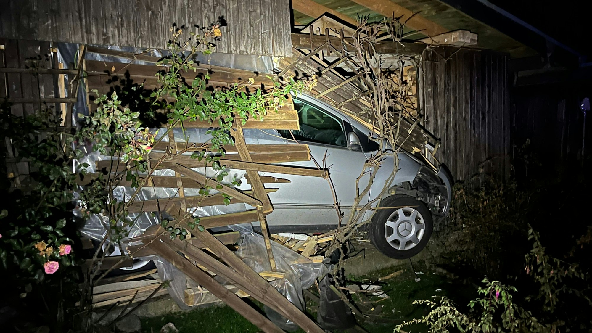 Der Wagen der Seniorin war total verkeilt im Carport.