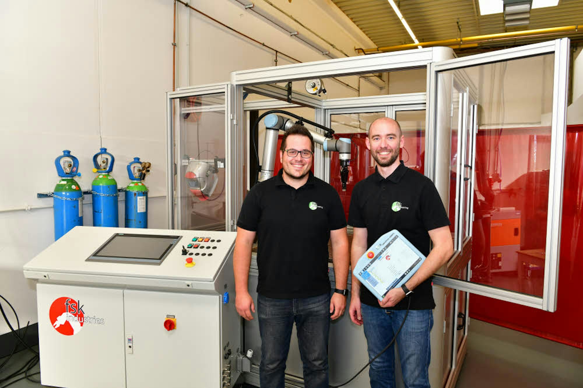 Automatisierung vorantreiben und Arbeitsplätze schützen – für Nils Kühle (33) und Christian Sühwold (37) von fsk engineering ist das kein Widerspruch. Anfang 2014 wagen die beiden den Schritt in die Selbstständigkeit. Sie sind Arbeitskollegen bei einem Automobilzulieferer. Kühle hatte zuvor vier Jahre als Handschweißer gearbeitet. Sühwold ist Programmierer. Beide haben eine gemeinsame Vision: Automatisierung vorantreiben, um Deutschland als Standort attraktiver zu machen und damit Arbeitsplätze zu schützen. „Mir hat meine Arbeit als Handschweißer immer viel Spaß gemacht, allerdings muss man einfach sagen, dass die Gase, die dabei entstehen, alles andere als gesund sind. Wenn ich nach der Arbeit unter der Dusche stand, war das Wasser schwarz“, blickt Kühle zurück.