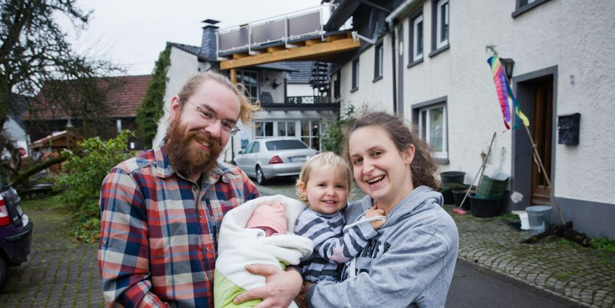 An diesem Freitagmorgen helfen ihm seine Frau Carolin und Tochter Mairy noch, die Zäune auf der Schafweide in der Marienheider Ortschaft Börlinghausen umzustecken. Nachmittags spürt Carolin Arnold erste leichte Wehen. „Da wussten wir, in den nächsten zwei Tagen geht es los“, erzählt ihr Mann Kevin.