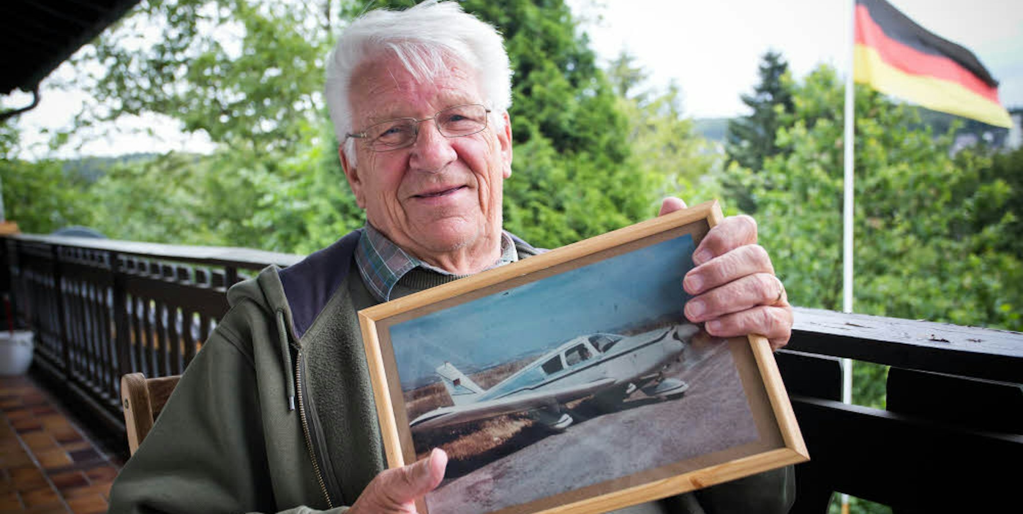 Ein Foto der Piper Cherokee erinnert Jürgen Becker an den außergewöhnlichen Männer-Ausflug.