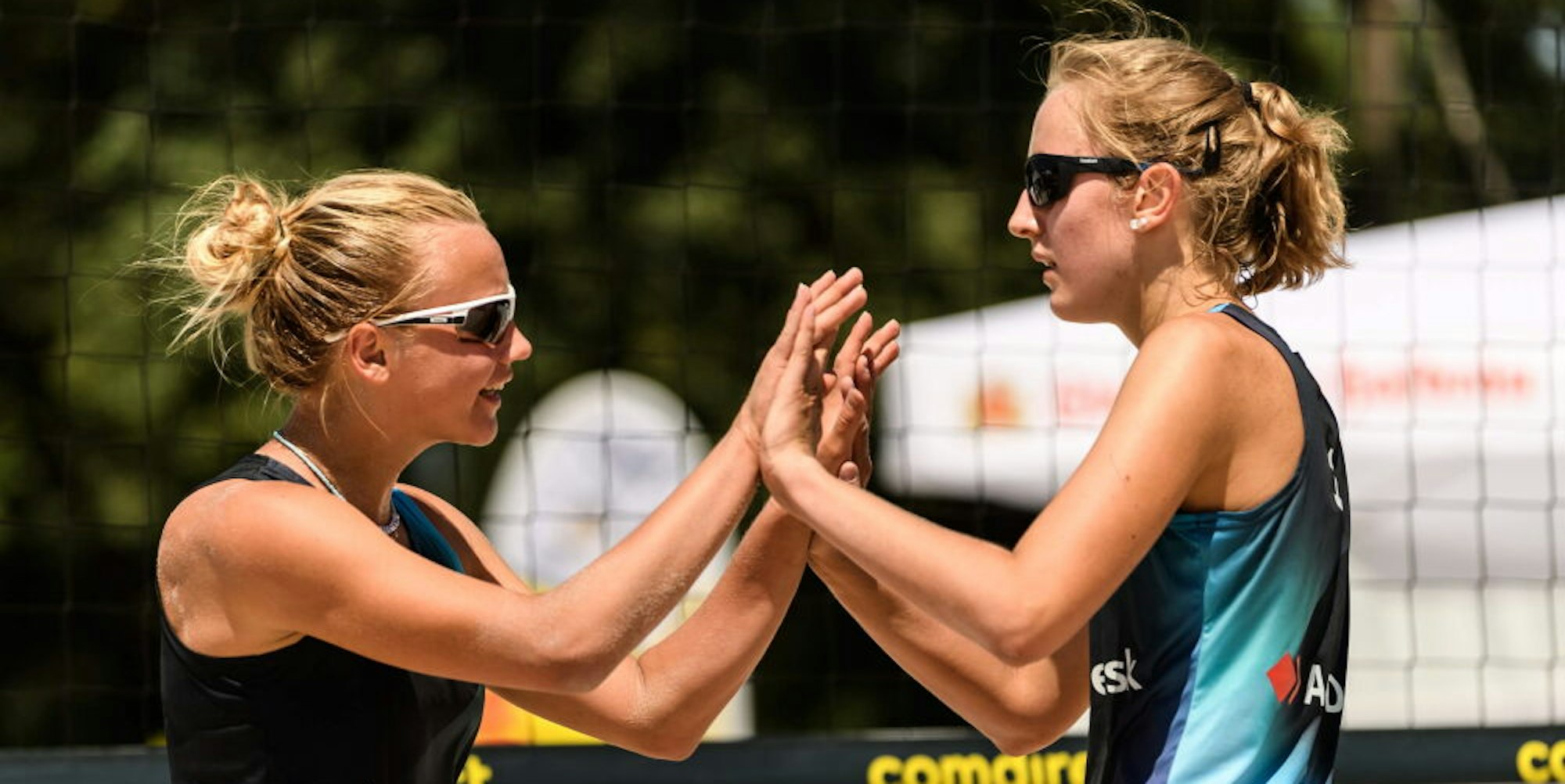 Die Beachvolleyballerinnen Jule Mantsch (r.) und Annika Berndt sicherten sich auch den U18-Titel.