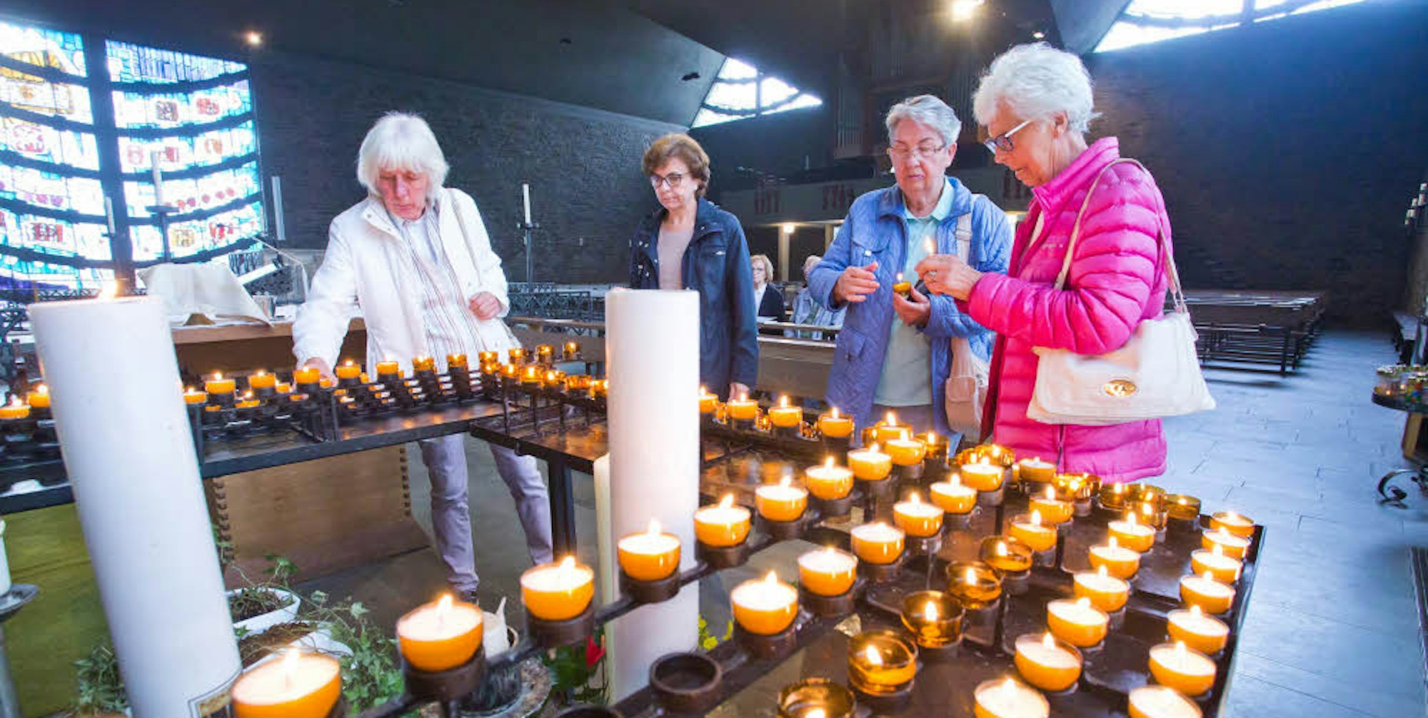 In der Montfortkirche zünden die Pilger nach teils stundenlangem Fußmarsch eine Kerze an.