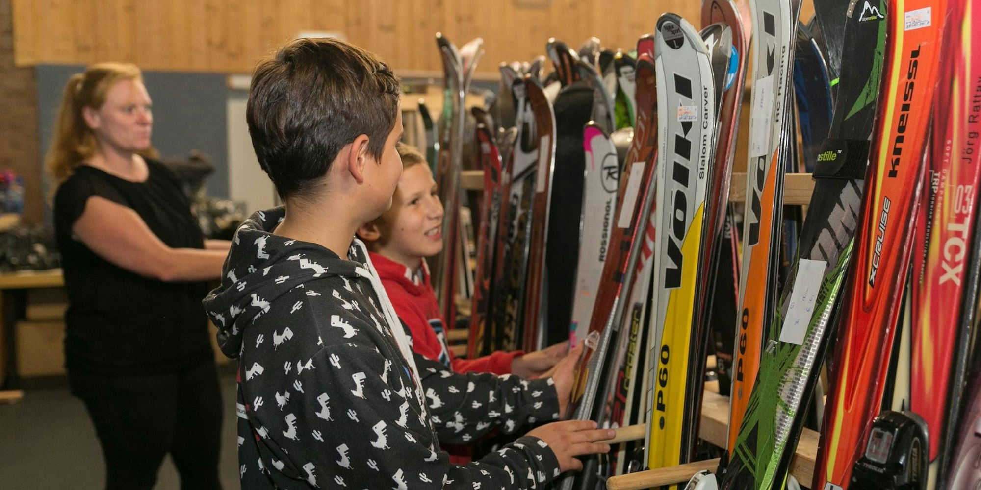 „Die alten Skier nehmen zu Hause viel Platz weg. Hier kann man sie einfach verkaufen. Über Ebay wäre das komplizierter“, erzählen sie. Derweil sucht Phil nach passenden Skischuhen. Sein Vater Thomas Steinert ist froh, dass der Basar wieder stattfindet und man zu fairen Preisen eine gute Skiausrüstung bekomme: „Die Kinder wachsen einfach schnell aus den Schuhen raus.“