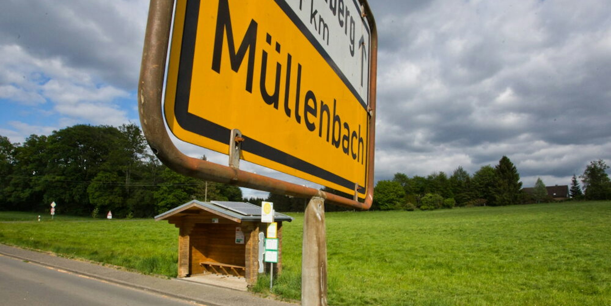 NeubaugebietBushäuschen und Schild werden versetzt