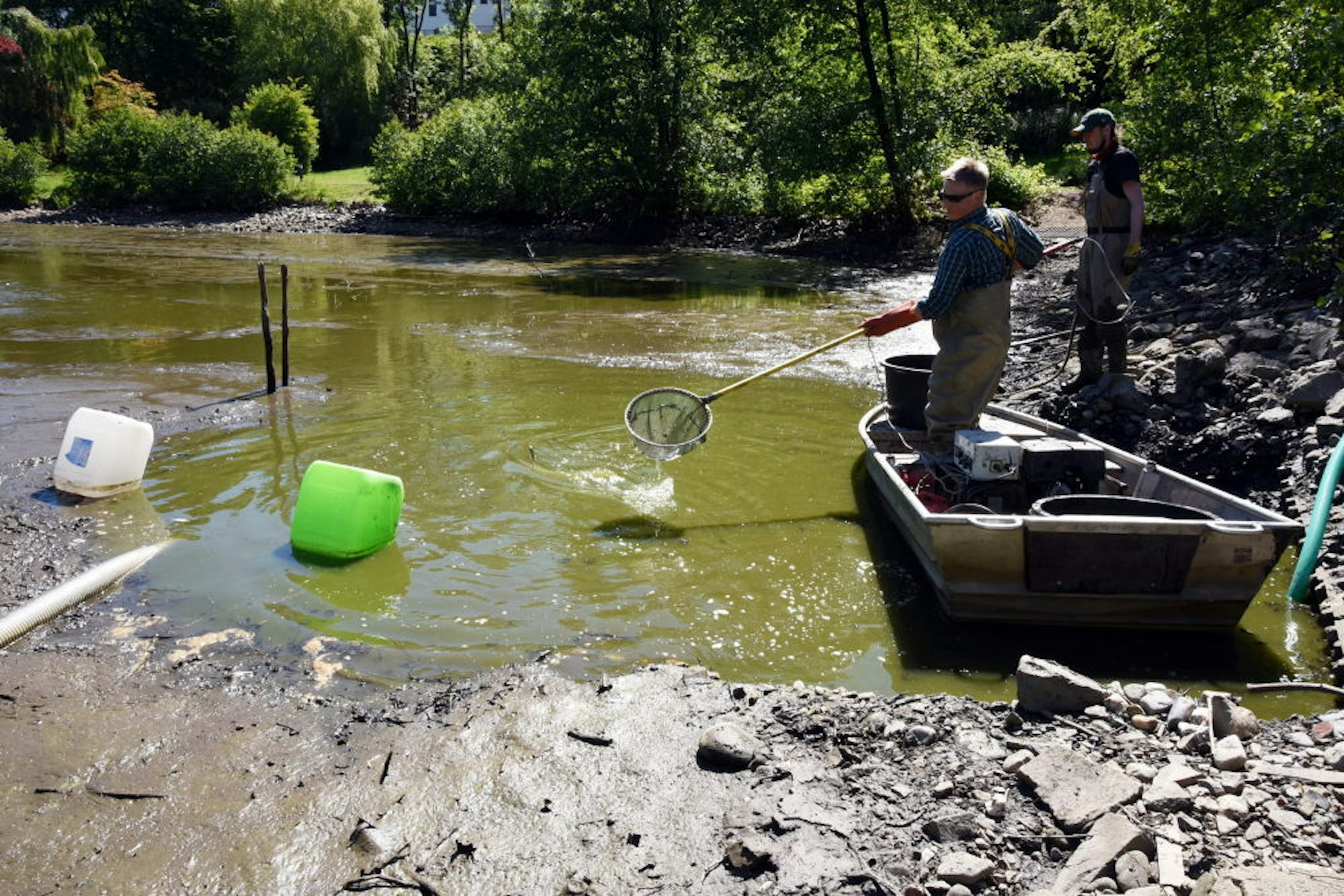 Für die Sanierung des Heilteichs müssen die Fische rausgefischt und umgesiedelt werden.