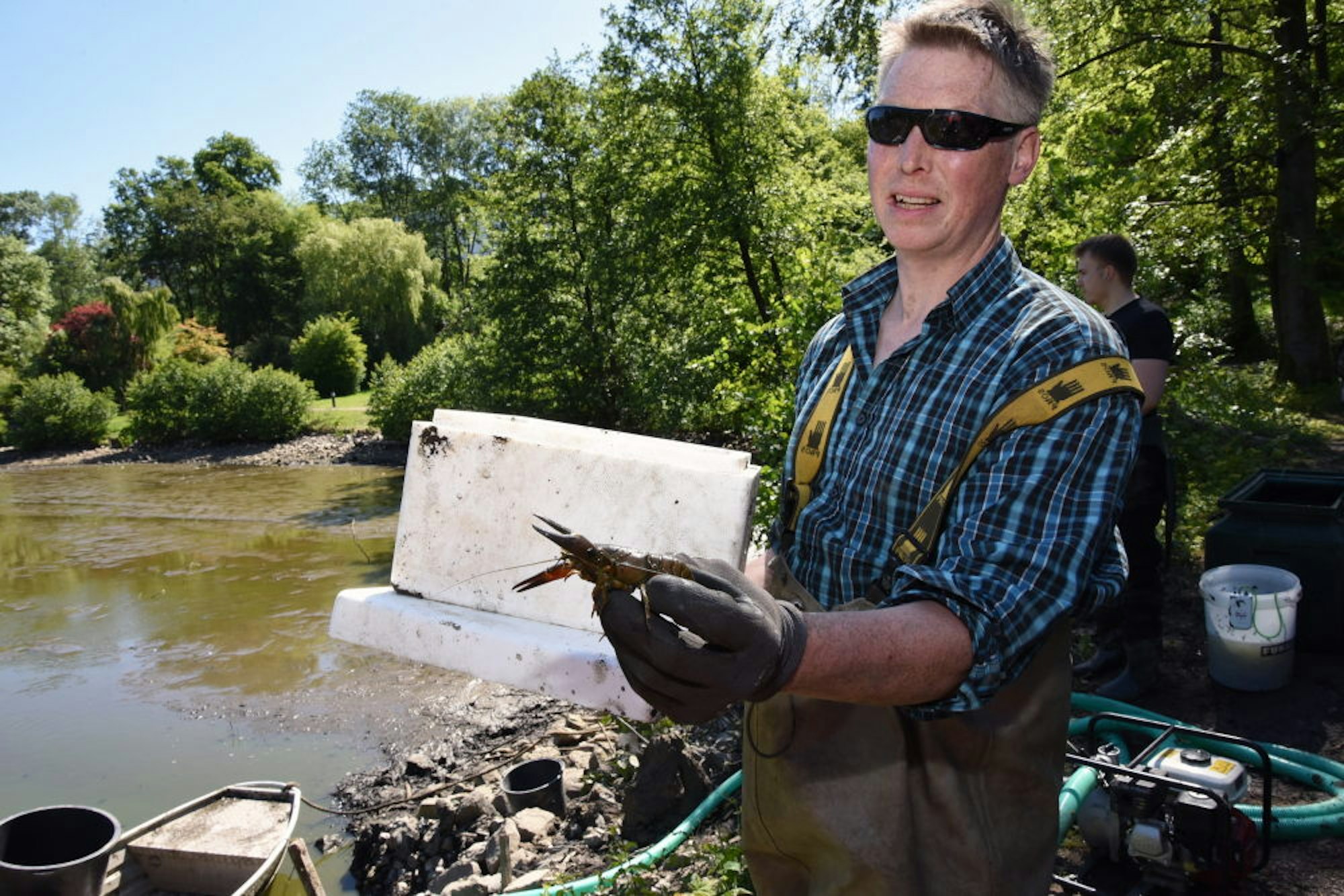 Bei der Trockenlegung des Marienheider Heilteichs tauchten sogar invasive Edelkrebse auf.