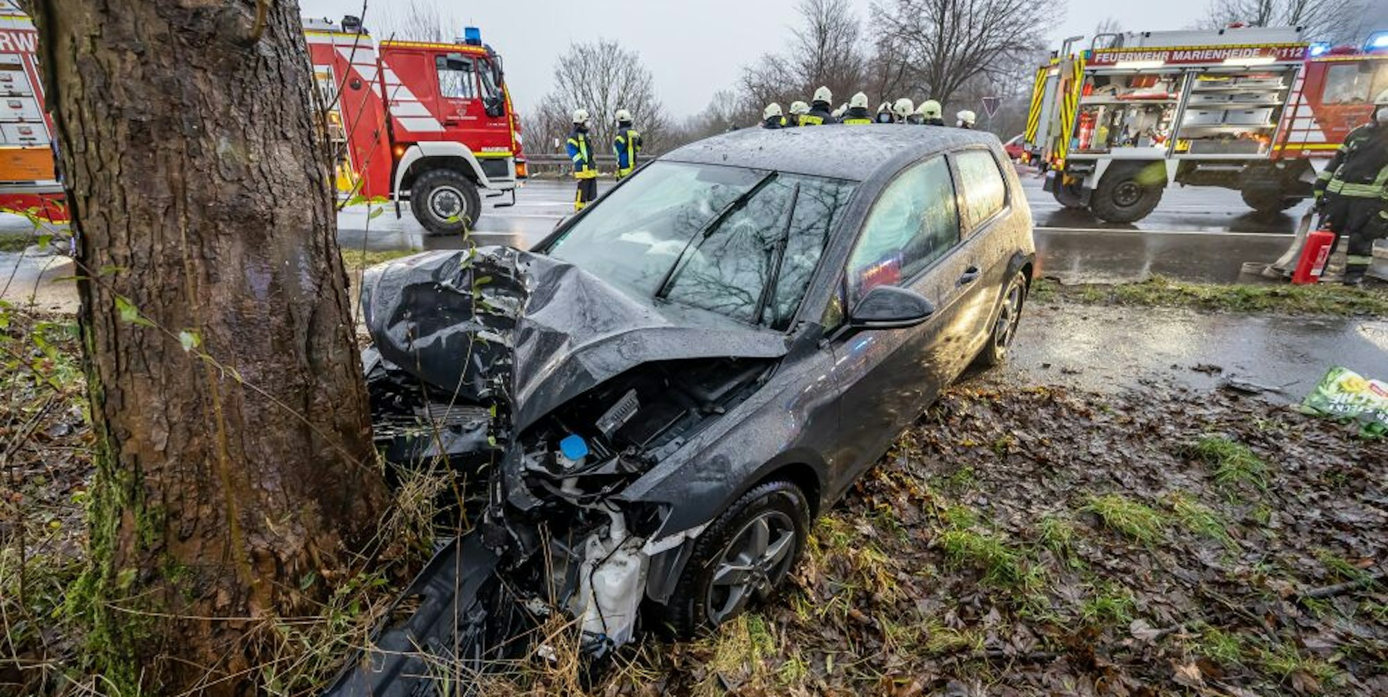 Der VW Golf krachte am Sonntagmorgen auf der Gummersbacher Straße gegen einen Baum.