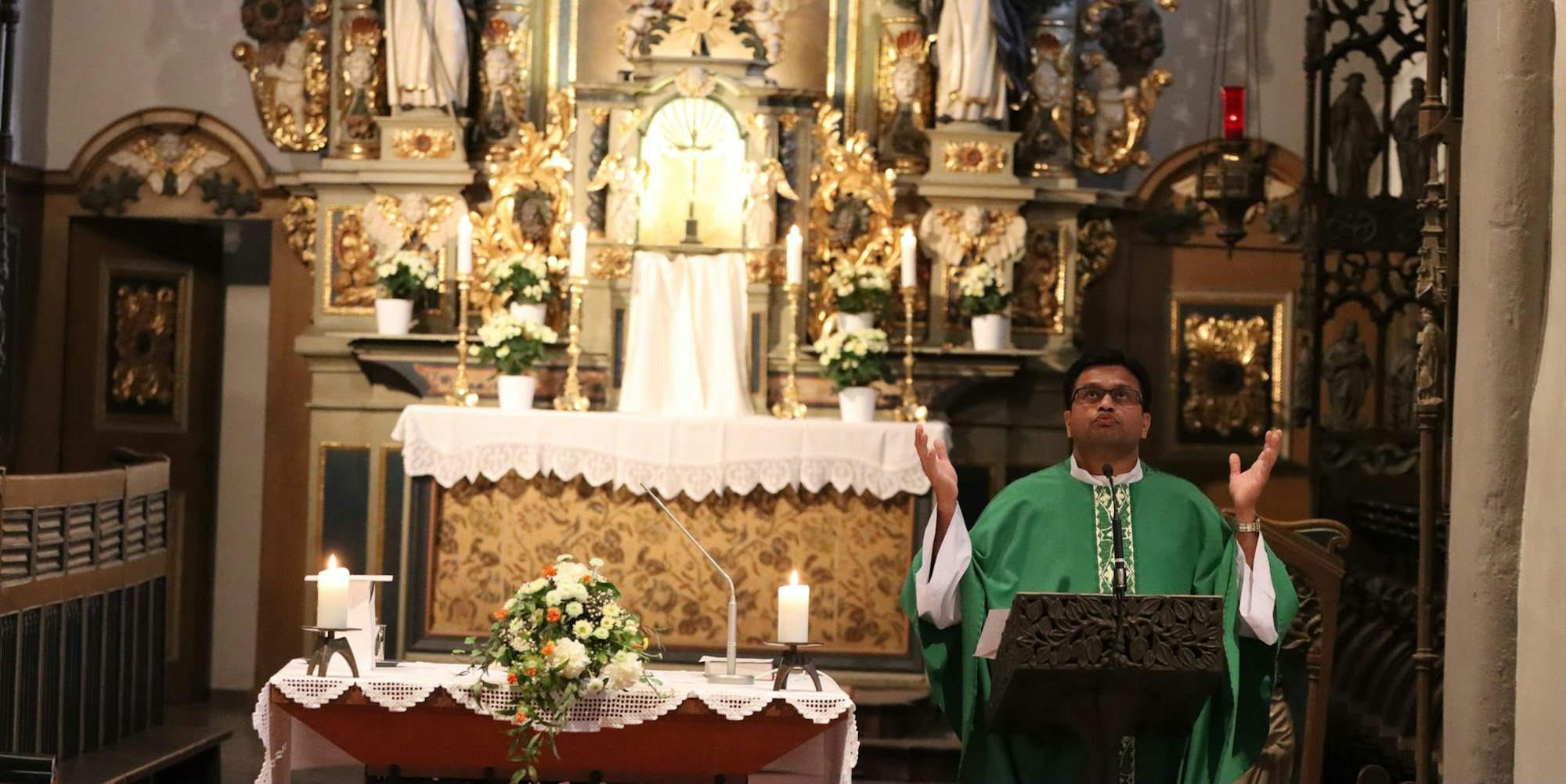 Marienheide – „Wir sind Pilger in der Ewigkeit. Pilgern ist ein Weg, um Klarheit zu finden“, sagte Pater Anthony Francis in seiner Predigt in der Pilgermesse am Donnerstag in der Wallfahrtskirche St. Mariä Heimsuchung. Zuvor hatte er aus dem Lukasevangelium die Episode von der langen Wanderung der schwangeren Maria zu ihrer Verwandten Elisabet erzählt, die sie unternommen hatte, um ihre Freude zu teilen: „Wie Maria sind auch wir auf einem Pilgerweg.“