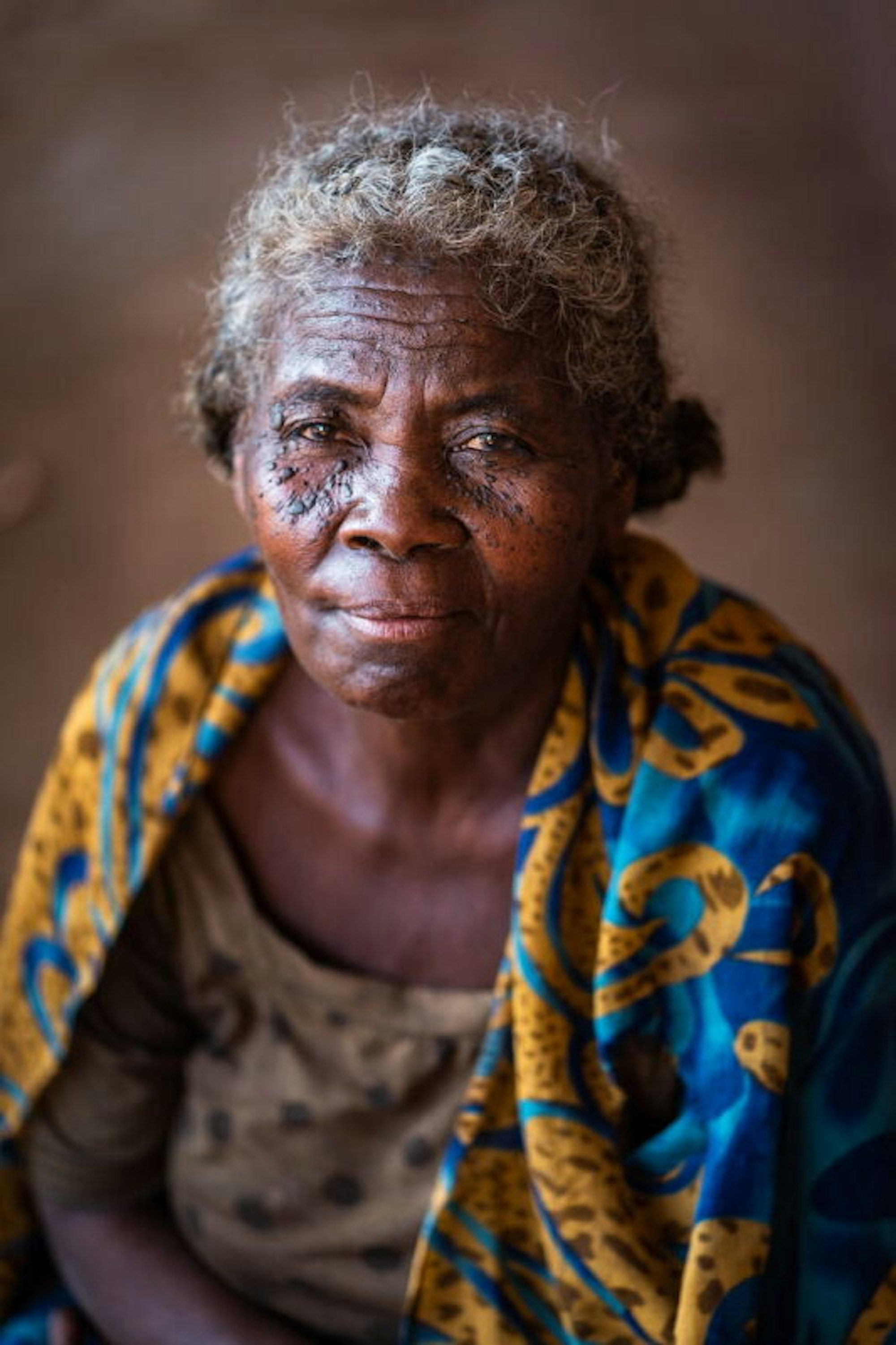 Das andere Bild, das in der Kategorie „Portrait“ nominiert wurde, zeigt eine ältere Frau. Sie trägt ein blau-gelbes Kleid und blickt mit großen Augen in die Kamera. „Sie war meistens sehr farbenfroh gekleidet“, sagt Halstenbach. Das weiß er, weil sie oft zu der mobilen Zahnarztpraxis gekommen sei. Tagelang saß sie im Wartezimmer, weil kein Termin frei war. „Sie war immer ganz ruhig und hat einfach gewartet.“ So habe sie auch ruhig reagiert und einfach in die Kamera gesehen, als er fragte, ob er sie fotografieren dürfe. „Ich finde, die Ruhe strahlt sie auf dem Bild aus. Ihr Gesicht ist sehr ausdrucksstark“, findet Halstenbach. Ihre Haut habe eine besondere Struktur.